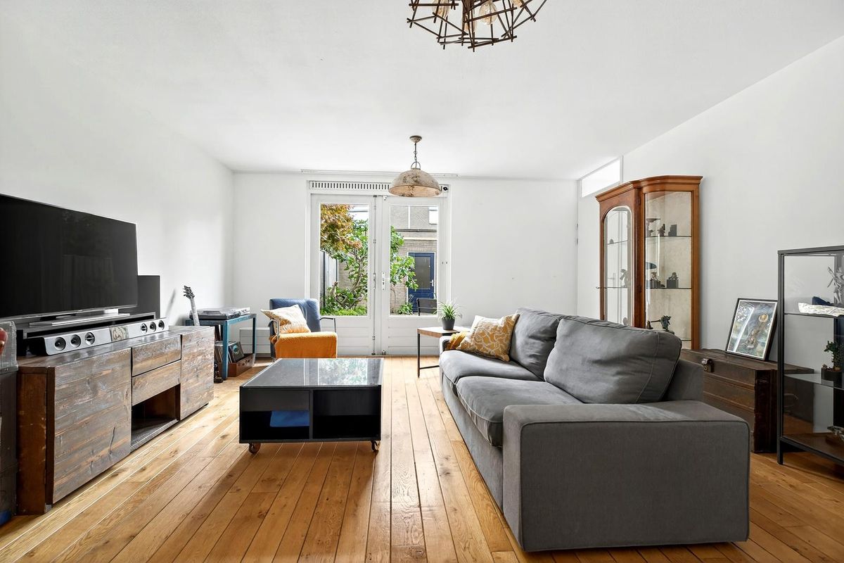 De tuingerichte woonkamer (ca. 29 m²) is heerlijk licht en ruim en voorzien van openslaande deuren naar de achtertuin. De gehele begane grond is afgewerkt met een houten vloer die de warme uitstraling van het huis versterkt. Via de tussenhal is er toegang tot de trap naar de eerste verdieping en een deur naar de tuin.