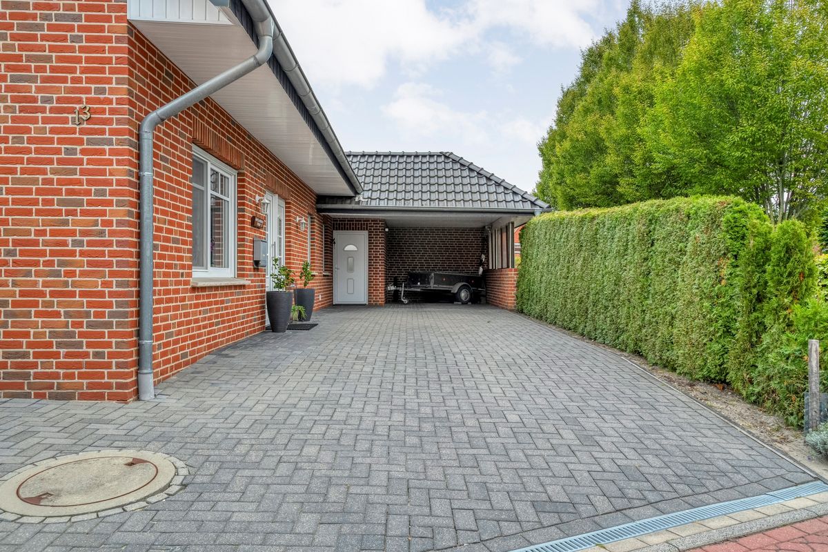 Meerdere overkappingen/veranda, carport, stenen berging, houten tuinhuis, moestuin en dubbele oprit. De dubbele oprit is superhandig voor uw caravan of camper.