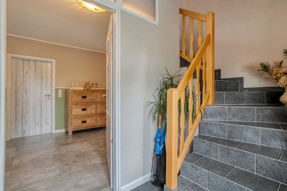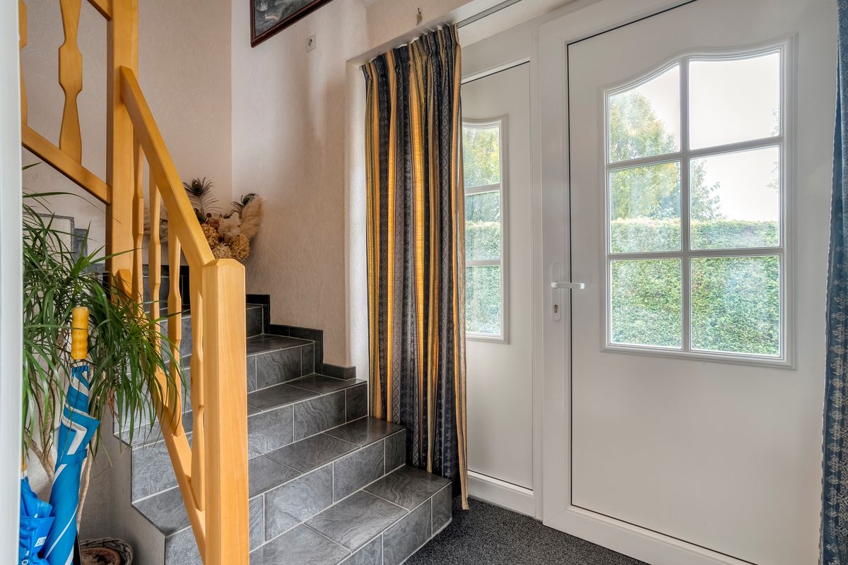 Middels centrale entree betreedt men de hal wat toegang geeft tot de begane grond alsmede de trapopgang naar de eerste verdieping: