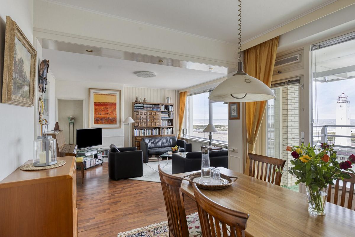 Op levendige woonlocatie, op de 6e etage, met prachtig uitzicht aan de voorzijde op de Vuurtoren, strand, zee, duinen en Koningin Wilhelminaboulevard en aan de achterzijde over Noordwijk en omgeving ligt dit verzorgde DRIEKAMERHOEKAPPARTEMENT (oorspronkelijk vier kamers). Het appartement heeft een ruim en zonnig (West) balkon en eigen berging in het onderhuis. Het complex is voorzien van liftinstallaties alsmede een gemeenschappelijk parkeerterrein.