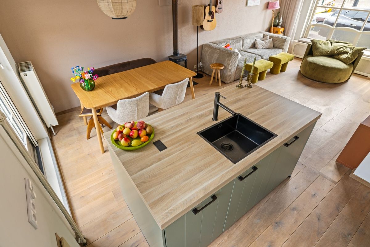 Centraal in de woonkamer bevindt zich de open keuken met kookeiland (2024), een absolute eyecatcher. De keuken is voorzien van hoogwaardige AEG inbouwapparatuur: een combi oven/magnetron, koelkast, vaatwasser, inductiekookplaat met geïntegreerde afzuiging én voldoende opbergruimte.