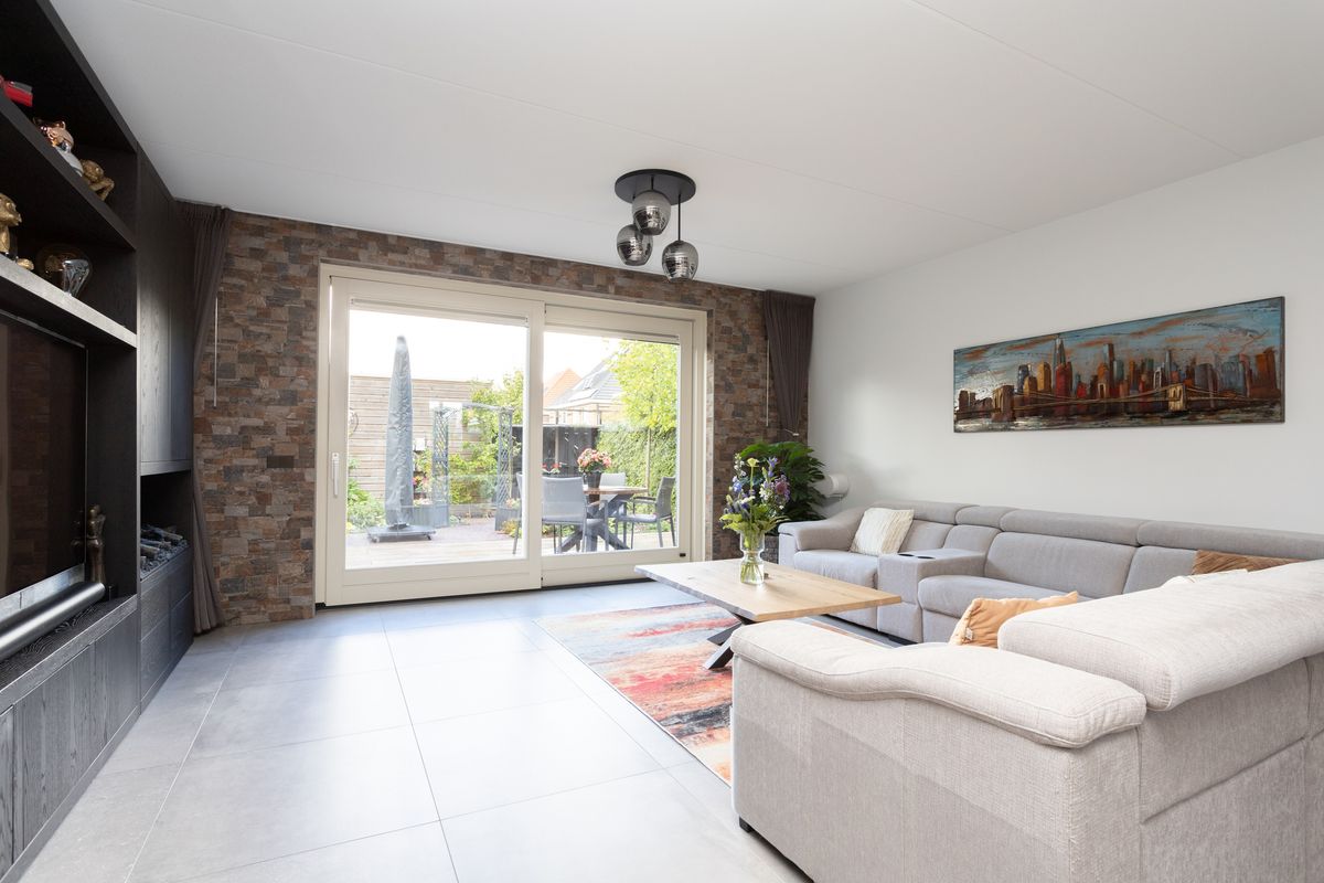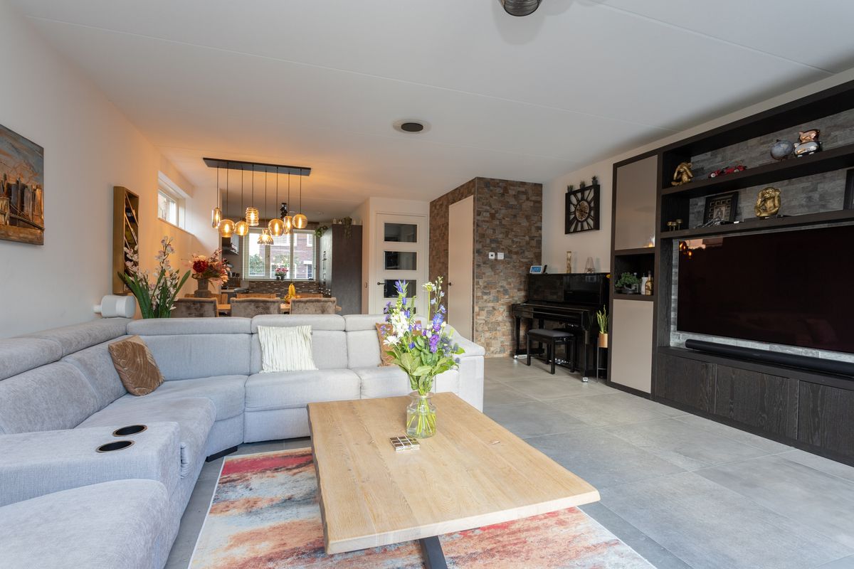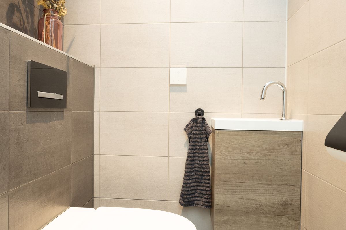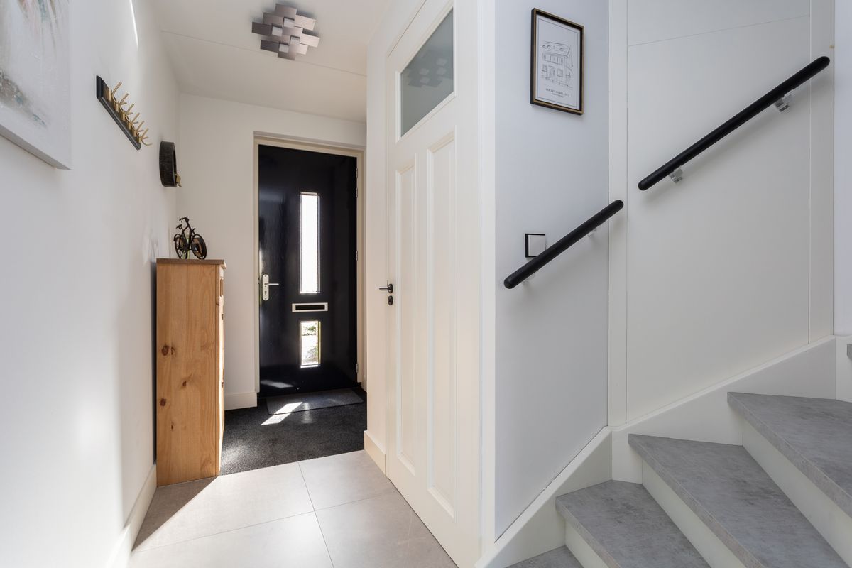 Entree woning, hal met uitgebreide meterkast en luxe toilet met fonteintje en toegang tot de royale living. Bij binnenkomst vallen direct de grote ramen op, heerlijk al dat licht. Op de vloer prachtige keramische tegels. Aan de voorzijde is de luxe open keuken, het ontbreekt u hier aan helemaal niets. Quooker, combi-oven, koelkast vriezer, vaatwasser en een inductie kookplaat.