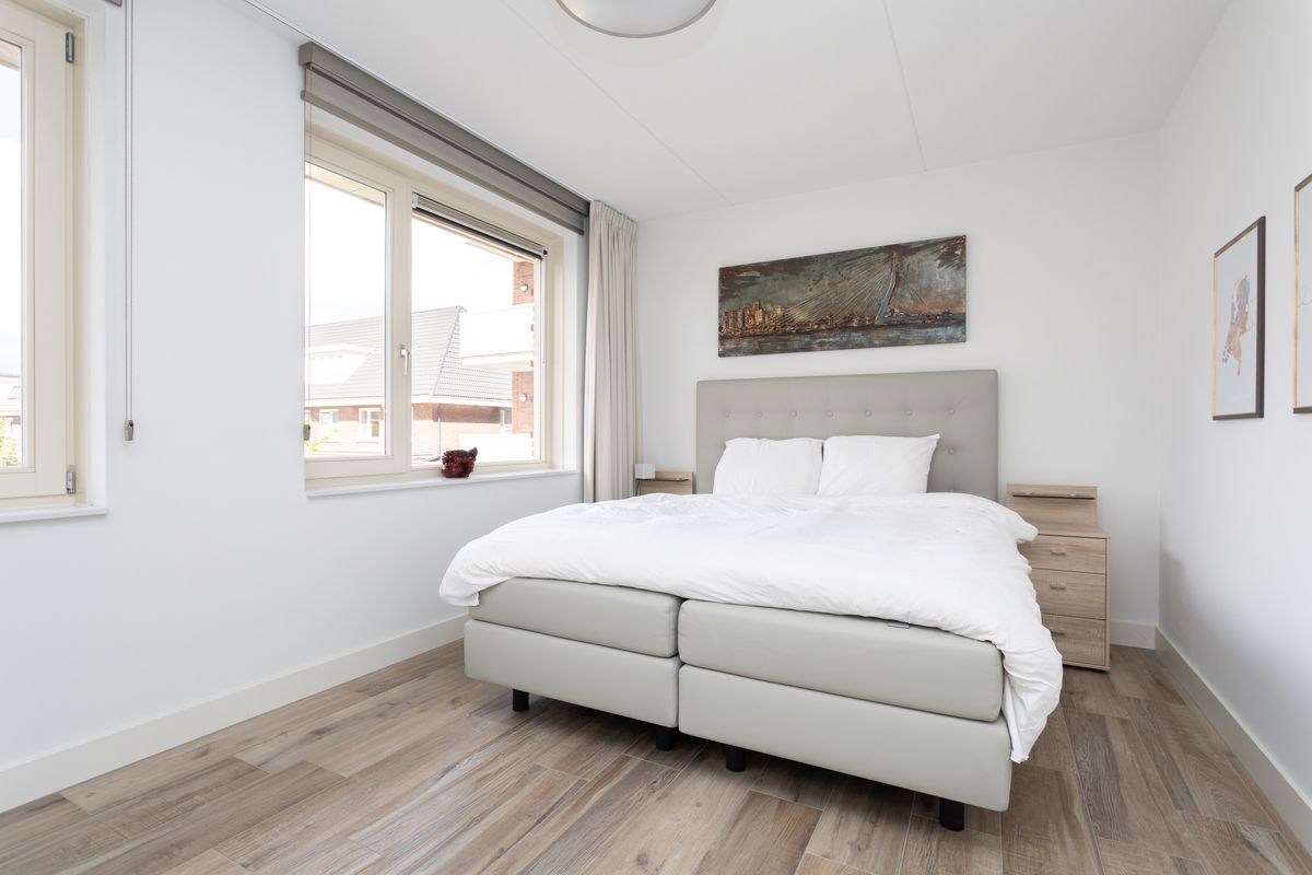 Op deze verdieping 2 slaapkamers en de badkamer. Beide slaapkamers zijn over de gehele breedte van de woning. De luxe badkamer beschikt over een ligbad met streams, royale inloopdouche, dubbele wastafel en een verlaagd plafond met spots. Tot slot is er een apart toilet met fonteintje.