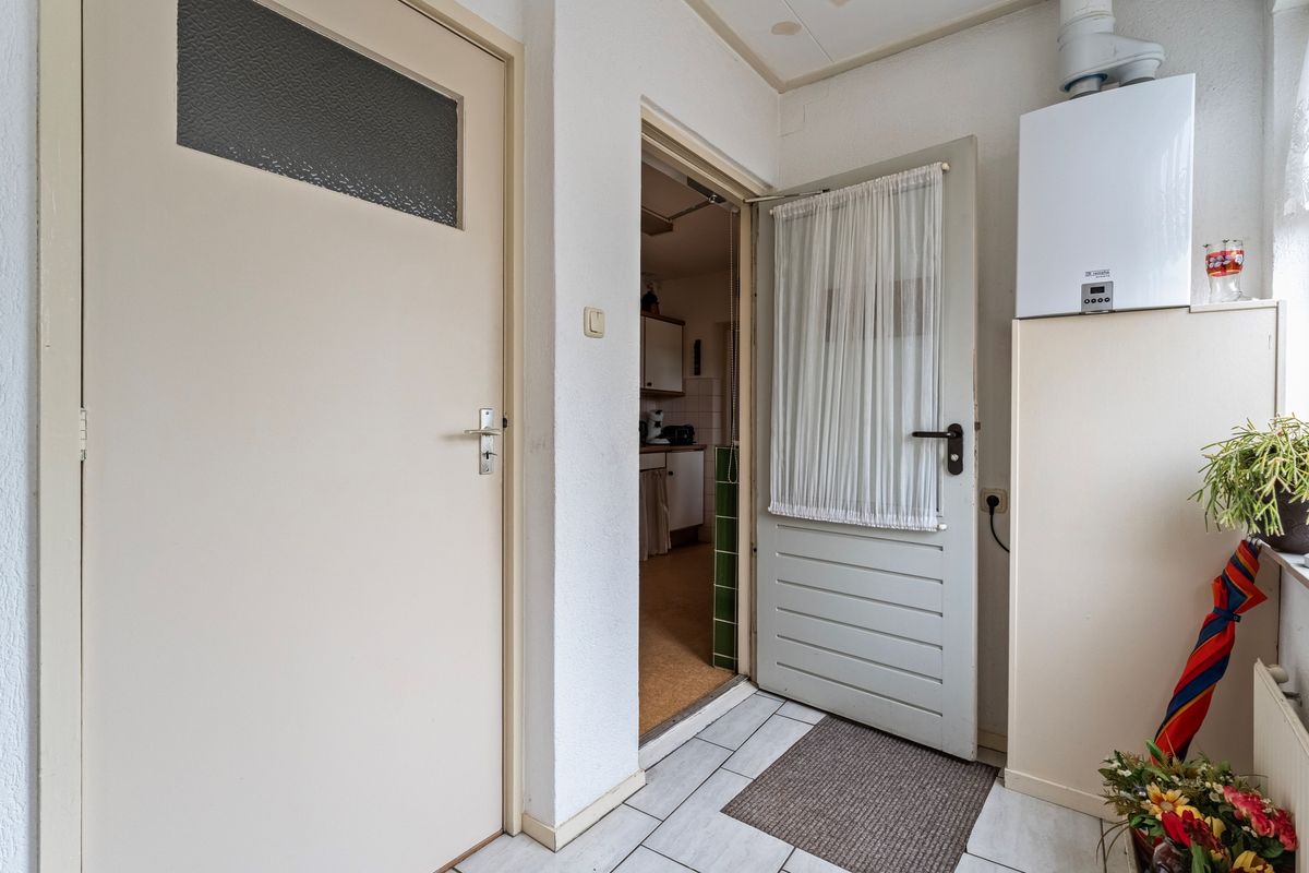 Via het tochtportaal verkrijgt men toegang tot de kelderruimte, bijkeuken met o.a. wasmachine-aansluitingen en c.v. installatie.