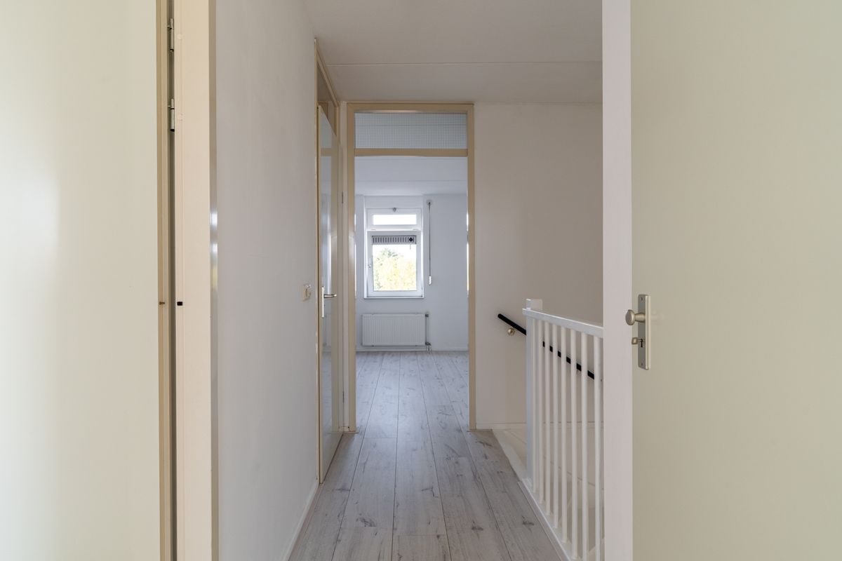 Op de tweede verdieping bevinden zich de slaapkamers en de badkamer. De woning telt drie slaapkamers, stuk voor stuk keurig afgewerkt en van een goed formaat. De masterbedroom is royaal: hier heb je alle ruimte voor een kingsize bed en voldoende kastruimte. De badkamer is compleet uitgerust met een ligbad, douche, toilet en wastafelmeubel – alles wat je nodig hebt voor een frisse start of een ontspannen moment.