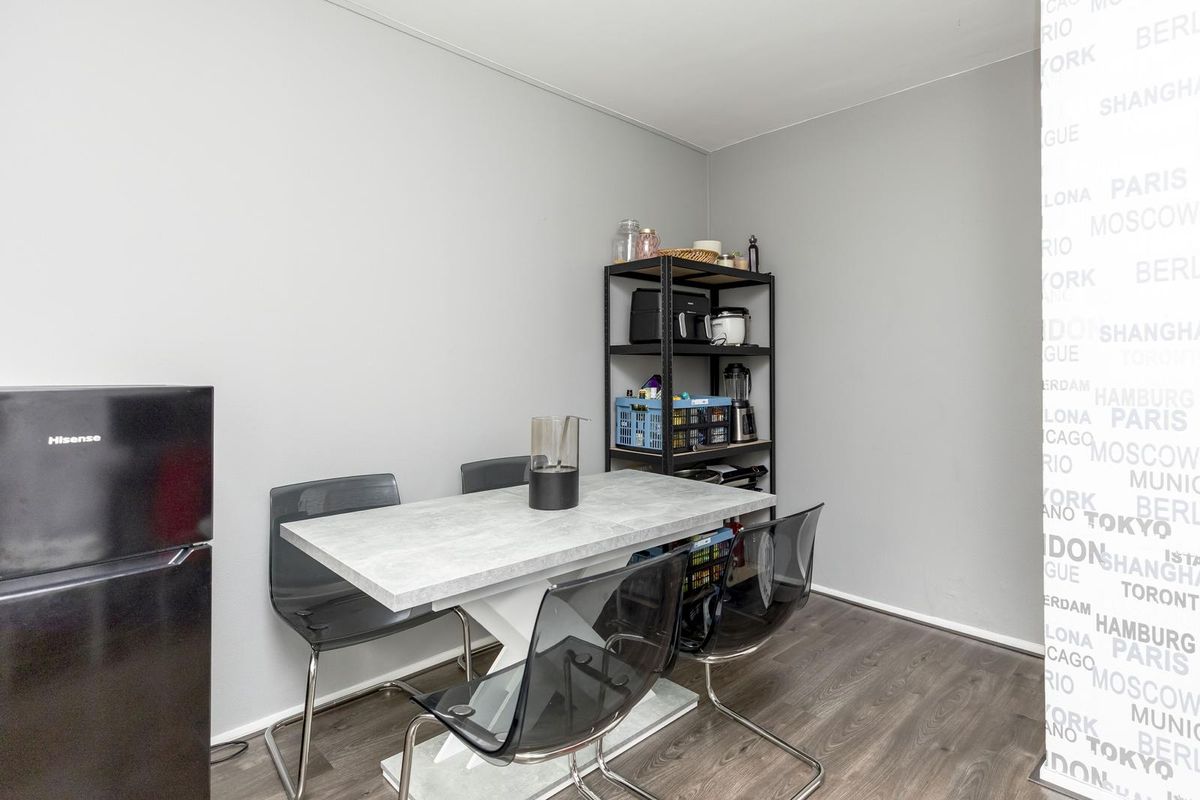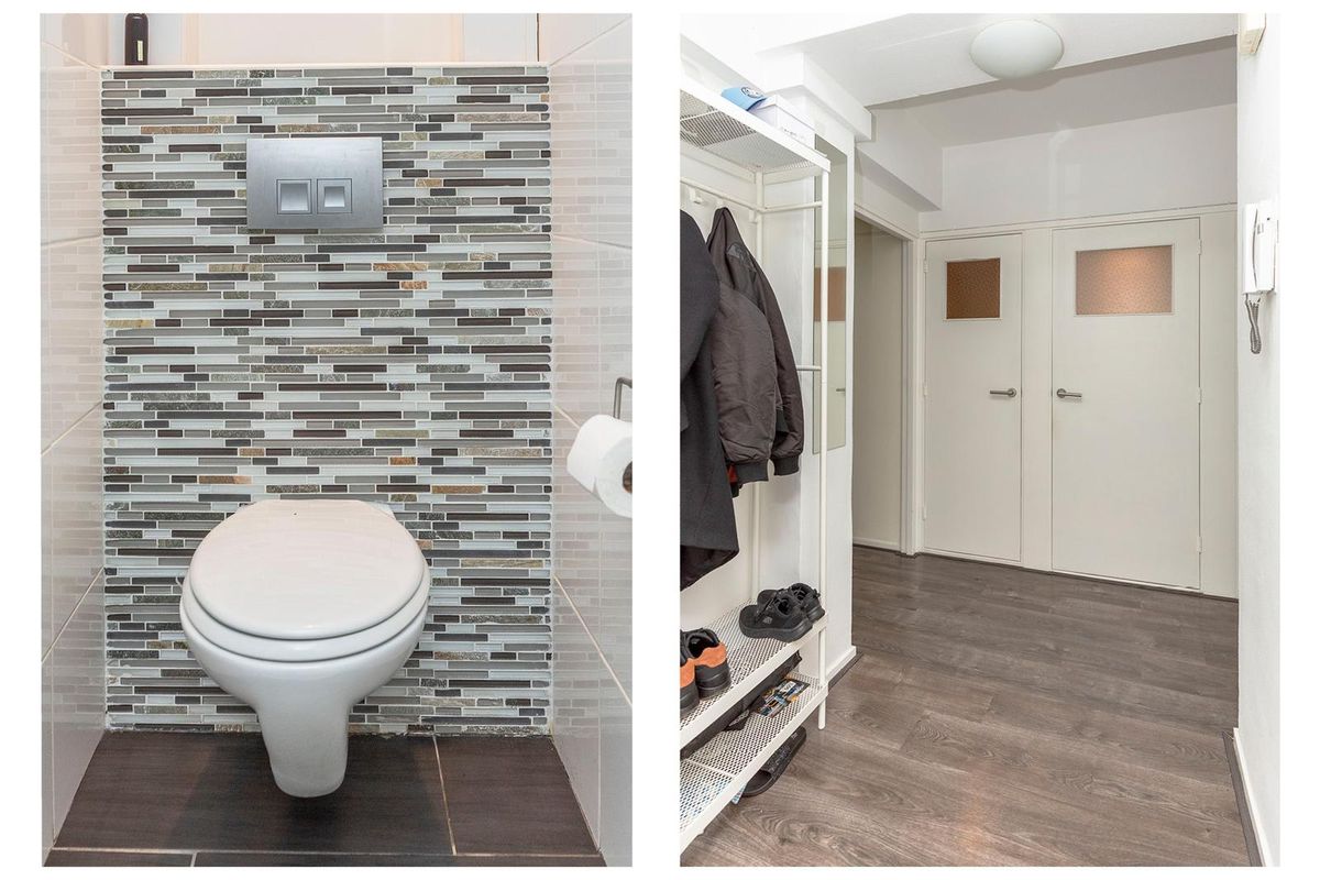 * Entree appartement, ruime hal met meterkast met slimme meters, keuken, slaapkamer, keuken, badkamer en toilet;