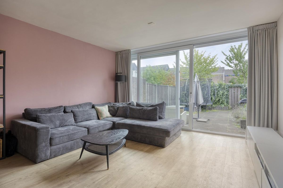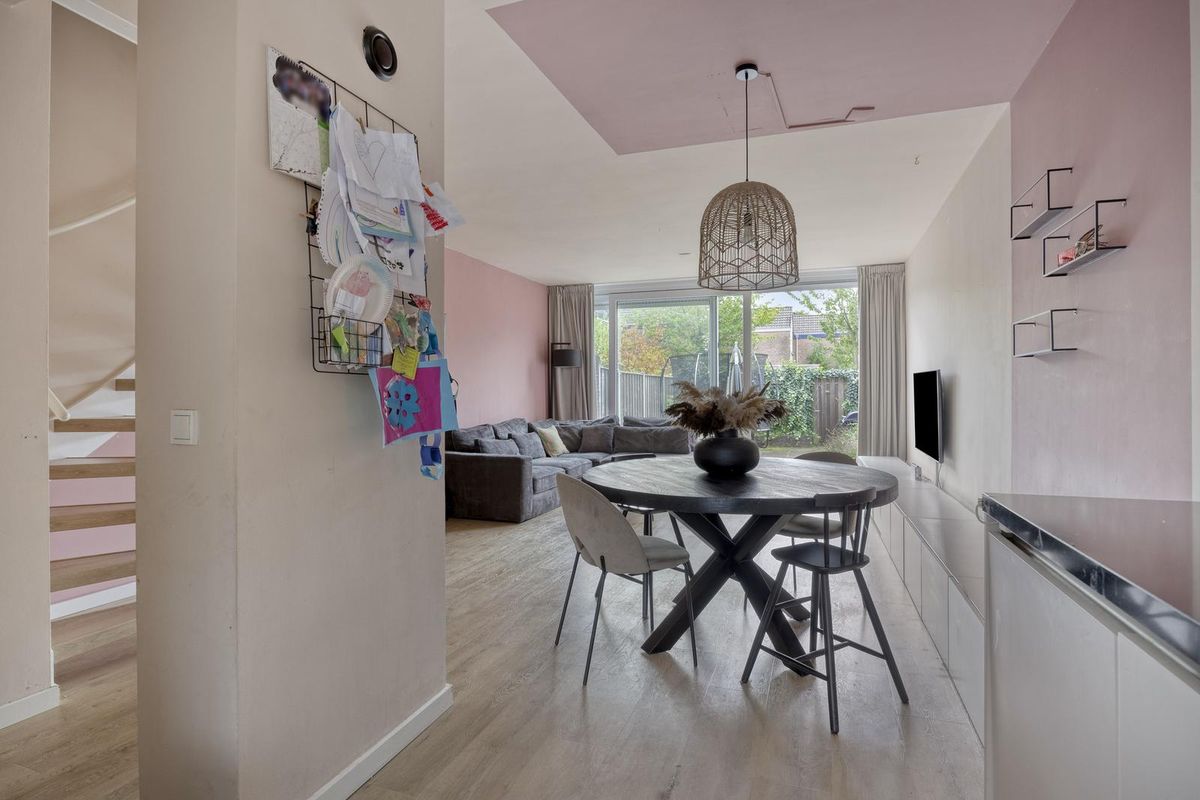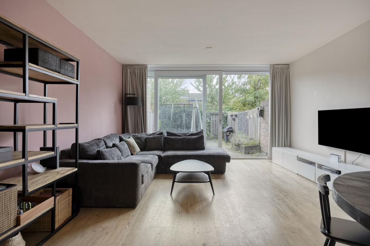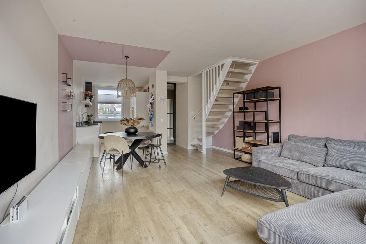 * Woonkamer met open trap naar 1e verdieping en schuifpui naar achtertuin;