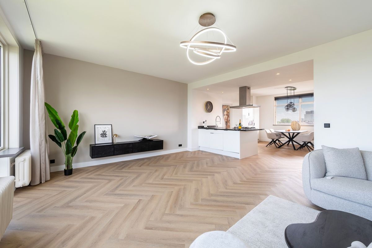 De gehele woning is afgewerkt met een prachtige visgraat PVC-vloer. De woonkamer biedt volop mogelijkheden, maar het absolute hoogtepunt is natuurlijk het uitzicht. Dankzij de westelijke ligging geniet je hier van de mooiste zonsondergangen, of je nu in de woonkamer zit of op het balkon. Extra leuk: dit is de perfecte plek om de Rotterdamse Marathon live te aanschouwen!