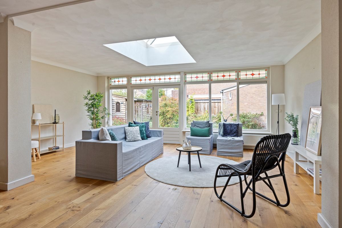 De woning is keurig onderhouden en de woonkamer is aan de achterzijde over de volle breedte uitgebouwd, deze uitbouw is voorzien van grote ramen, dubbele tuindeuren en een riante lichtstraat waardoor er een mooie lichtinval ontstaat. Aan ruimte geen gebrek!