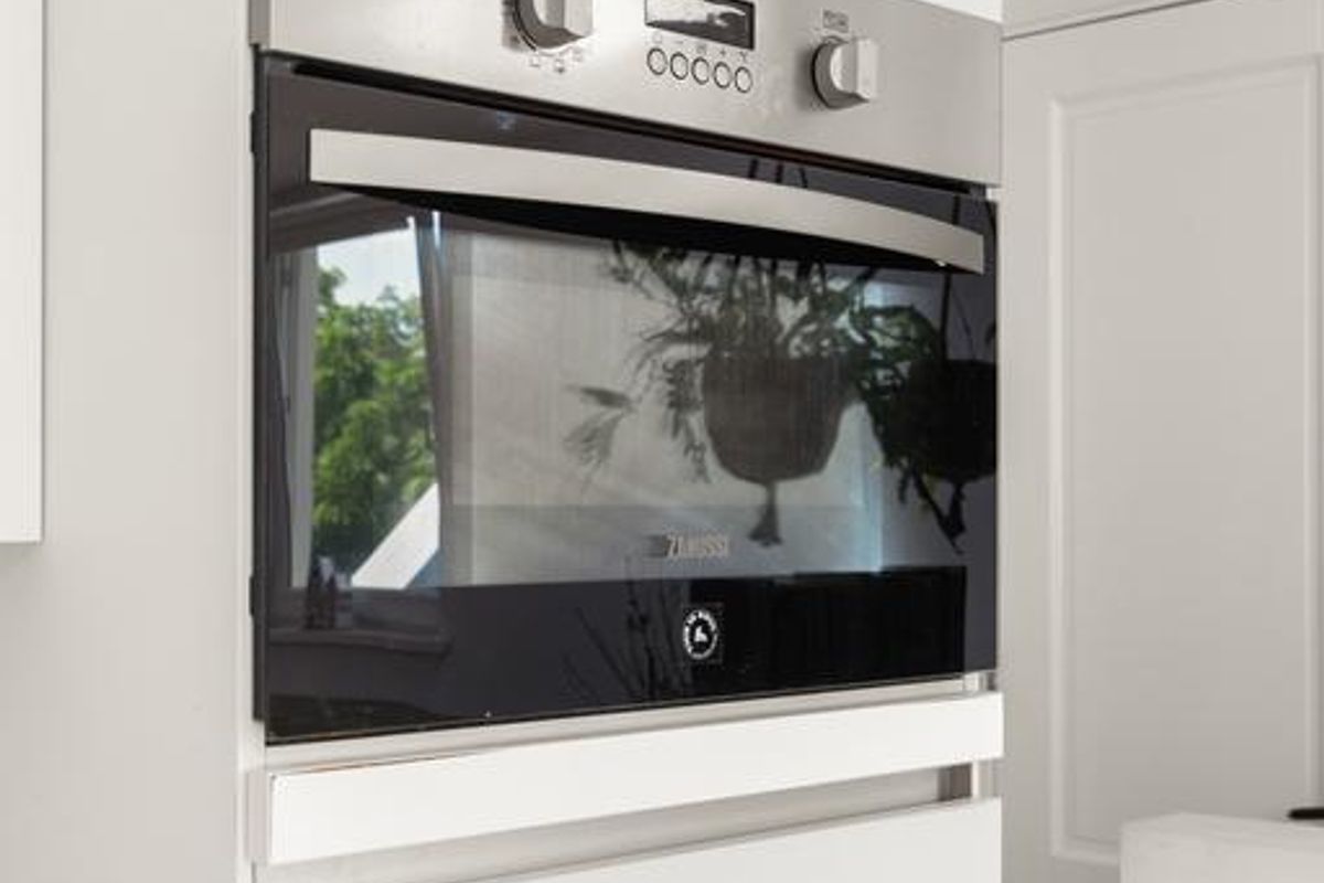 De keuken is van alle benodigde luxe voorzien met onder andere een combioven, 5 pits gasfornuis, koelkast en vriezer. Daarnaast is er veel opbergruimte door de kastjes boven, onder en in het keukeneiland.
