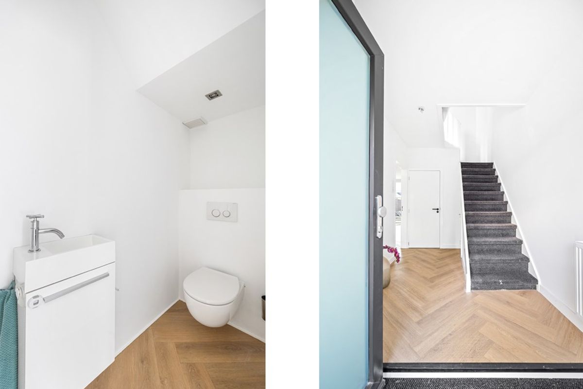 Zodra je de voordeur opent stap je een ruime hal in met een meterkast (vernieuwd met 12 groepen), een trapkast en mooie gerenoveerd toilet.