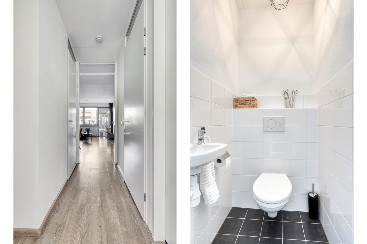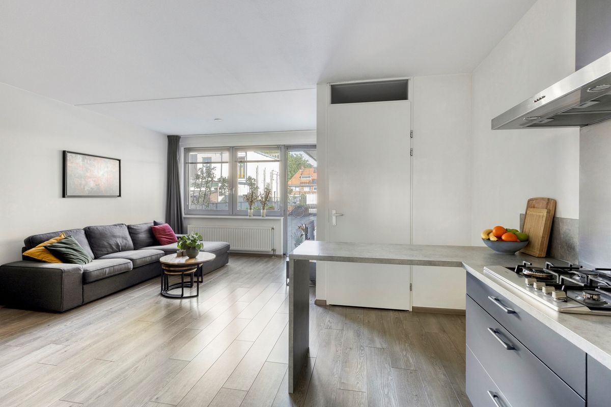 Vanuit de gezellige binnentuin kom je binnen in de hal met meterkast en glasvezelaansluiting. Van hieruit stap je binnen in de royale leefruimte met open keuken. De keuken (2012) is voorzien van diverse inbouwapparatuur zoals een 4 -pits gaskookplaat met afzuigkap, vaatwasser, koelkast en combi-oven/magnetron. Via de tweede hal bereik je de overige ruimtes. De nette badkamer beschikt over een douche met thermostaatkraan en een wastafel met meubel. Daarnaast is er een inpandige berging met cv-opstelling, wasmachineaansluiting en mechanische ventilatie. Er is een apart toilet met fonteintje. Het appartement heeft twee ruime slaapkamers van circa 15 m², waarvan één met Frans balkon. De slaapkamers hebben veel lichtinval door de grote raampartijen.