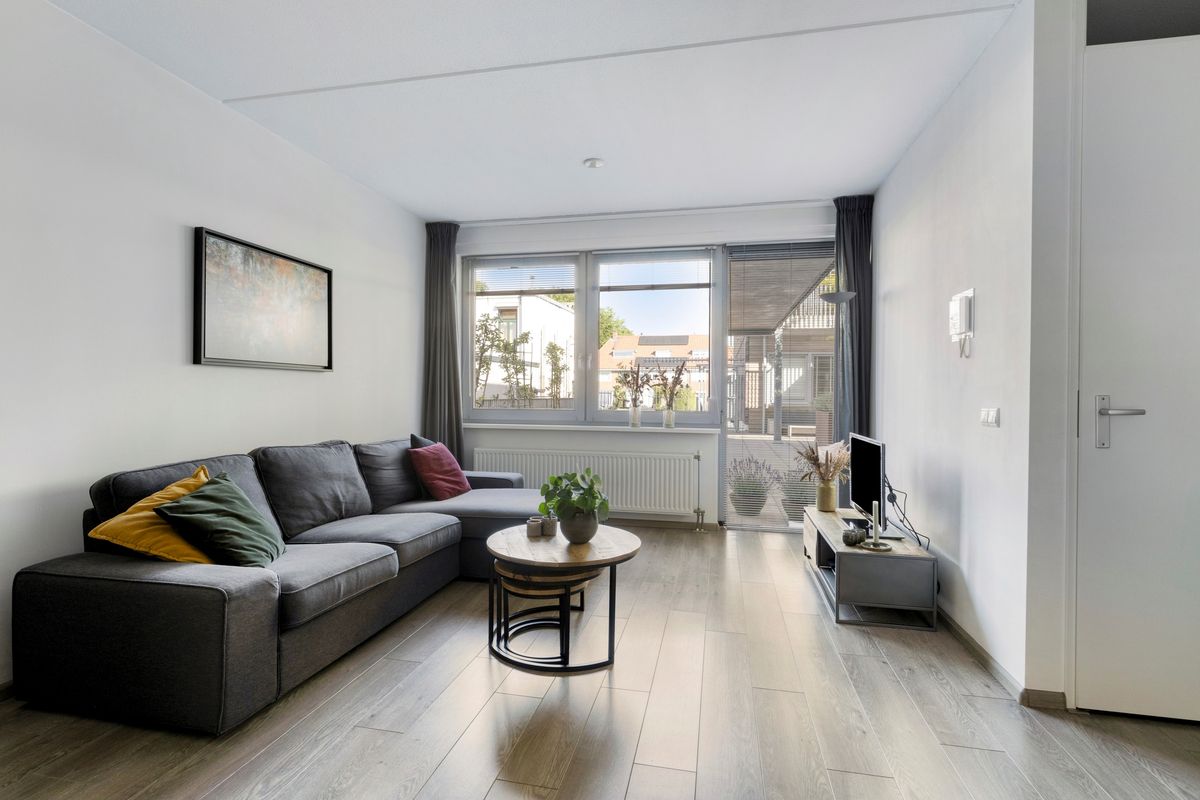 Het appartement bevindt zich op de begane grond. Hierdoor geniet je van extra wooncomfort en een royaal terras met middag- en avondzon.