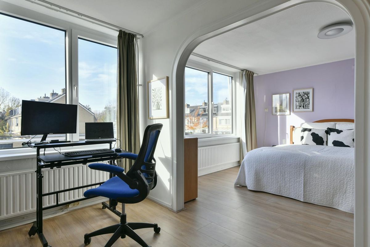 Drie van de vier slaapkamers zijn gelegen op de eerste verdieping en allen goed bereikbaar vanaf de overloop. Momenteel is er een open verbinding, met wederom een sierboog, tussen de grootste en de kleinste slaapkamer (zie plattegrond). Zodoende is er handig een extra thuiswerkplek gecreëerd door de huidige bewoners, maar deze ruimte kan natuurlijk ook perfect dienen als inloopkast, hobbyruimte of babykamer. Daarbij is het eenvoudig om daadwerkelijk afgesloten slaapkamers in te richten.