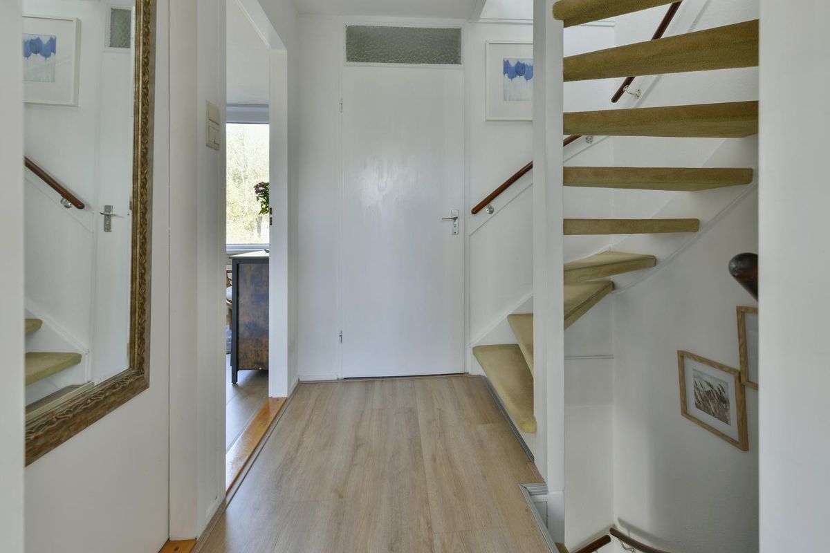 Upon entering, you step directly into the hall with a wardrobe, closet space, the first toilet, and the stairs to the upper floor. A door has been placed between the hall and the living room, creating a convenient separation with draft portal. The house has been neatly laid with modern laminate flooring in wide wood-look strips, and the cozy atmosphere with warm colors will undoubtedly feel familiar very quickly. Welcome home.