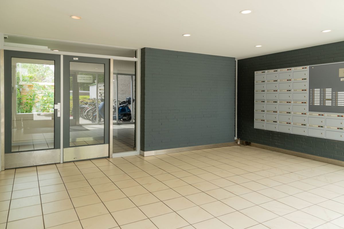 Centrale entree met bellentableau, brievenbussen, afgesloten berging, liften en trappenhuis.