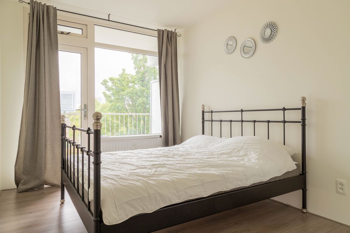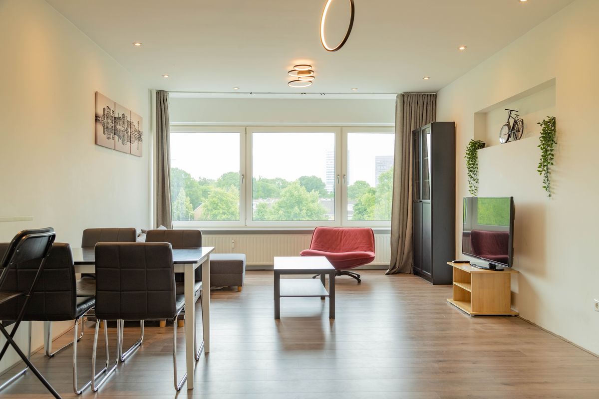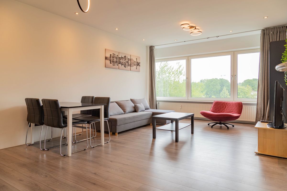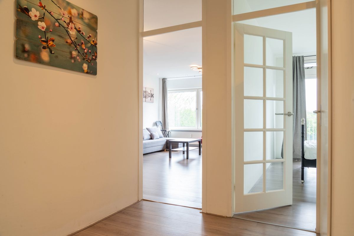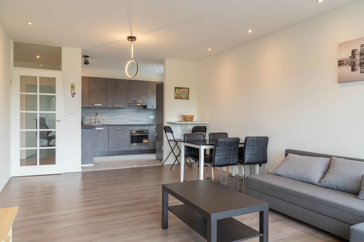 De woning is vier jaar geleden volledig gerenoveerd en verkeert in uitstekende staat. Je komt binnen via de hal die toegang geeft tot het separate toilet, een praktische wasruimte, twee slaapkamers en de ruime woonkamer met open keuken. De moderne keuken is strak vormgegeven en is bij de woonkamer getrokken. Doordat het appartement op de hoek ligt, zijn er ook ramen aan de zijkant, wat zorgt voor een bijzonder lichte en grote ruimte. Vanuit de master bedroom heb je toegang tot het balkon, een fijne plek op het zuidoosten.