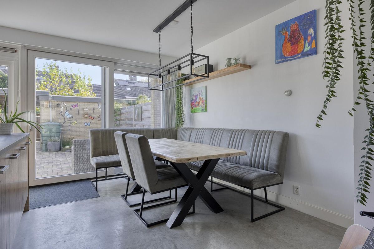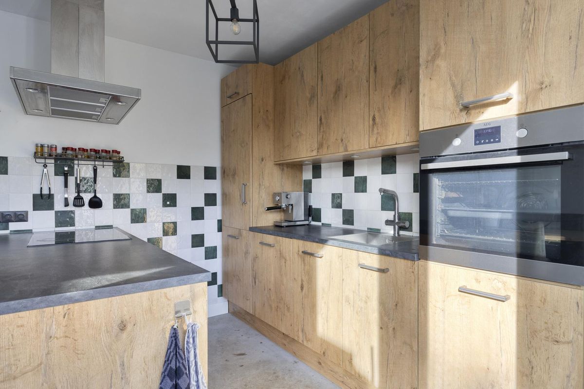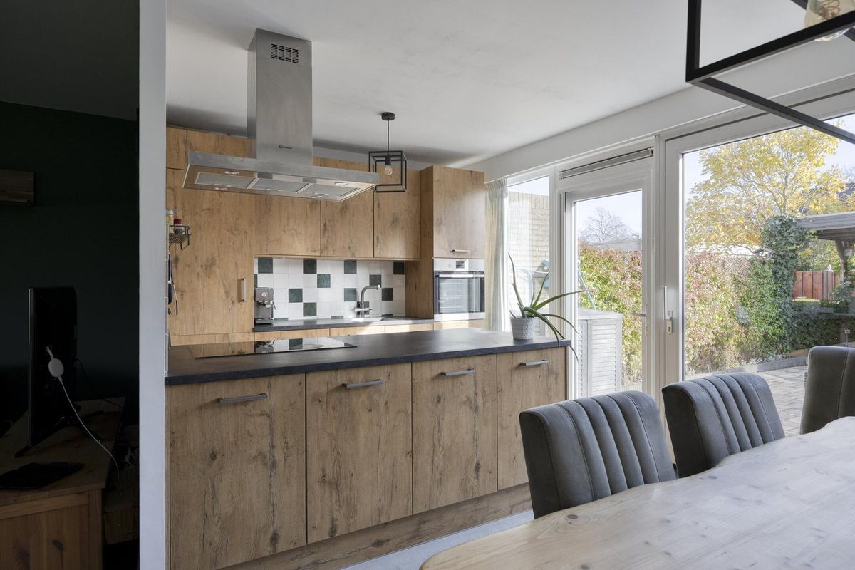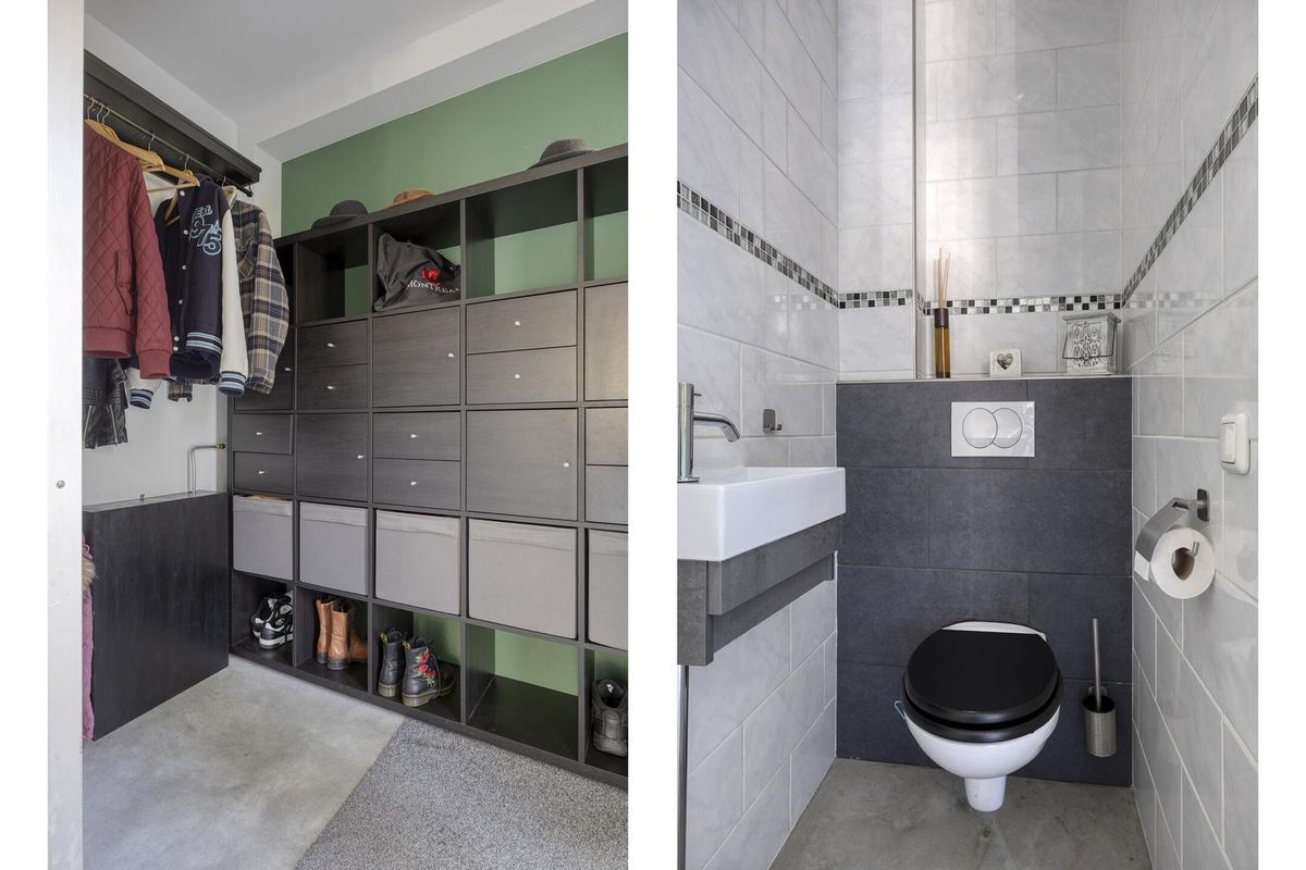 Bij binnenkomst in de entree/hal heeft u toegang tot de garderobe en meterkast. Via de hal komt u in de ruime en lichte woonkamer, die door de Z-vormige indeling een prettige sfeer en veel ruimte biedt. De grote raampartijen zorgen voor veel natuurlijk licht, en de woonkamer heeft een directe verbinding met de half open keuken aan de achterzijde van de woning. De keuken is van moderne kwaliteit en beschikt over een kookeiland met inductiekookplaat, afzuigkap en een wandopstelling met combi-oven, Quooker en een koel-vriescombinatie. De open verbinding met de eetkamer maakt het de ideale plek om te koken en tegelijkertijd contact te houden met het gezelschap in de eetkamer. De 13 meter diepe achtertuin is bereikbaar middels een loopdeur en een schuifpui. De begane grondvloer is afgewerkt met een monoliet betonlook afwerking die de woning een moderne uitstraling geeft. Bovendien is de vloer voorzien van vloerverwarming, wat zorgt voor een aangename temperatuur in de koude maanden. Tot de slot de loopdeur naar de tussenhal met trapopgang en toiletruimte.