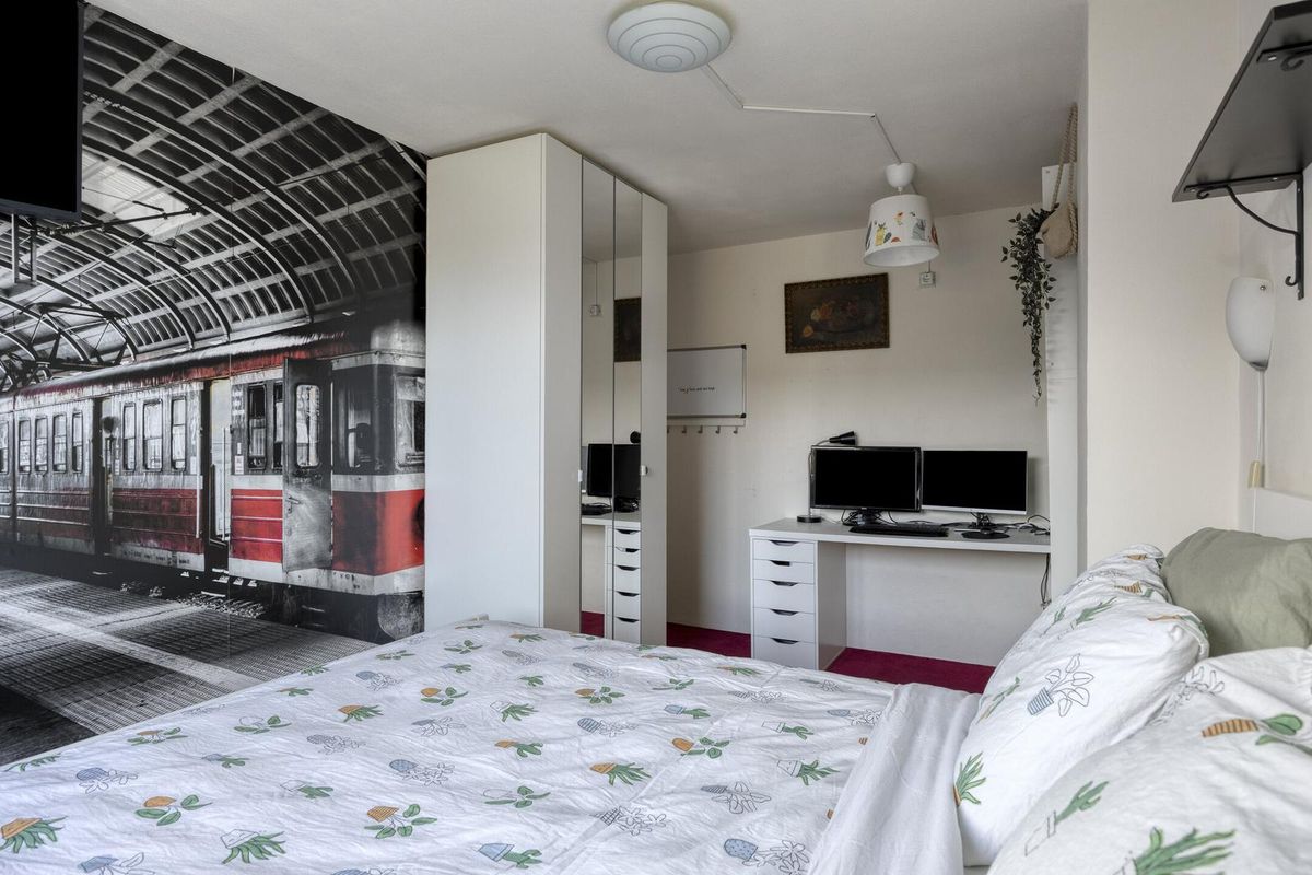 Via een vaste trap bereikt u de voorzolder op de tweede verdieping. Deze voorzolder biedt ruimte voor zowel de wasmachine- en drogeraansluiting als de opstelplaats voor de cv-ketel en de transformator voor de zonnepanelen. De voorzolder is een praktische ruimte voor het opbergen van spullen. Vanuit de voorzolder heeft u toegang tot de vierde slaapkamer, die beschikt over een dakraam voor extra lichtinval. Deze extra slaapkamer biedt volop mogelijkheden voor een logeerkamer, een werkkamer of een speelkamer voor kinderen.