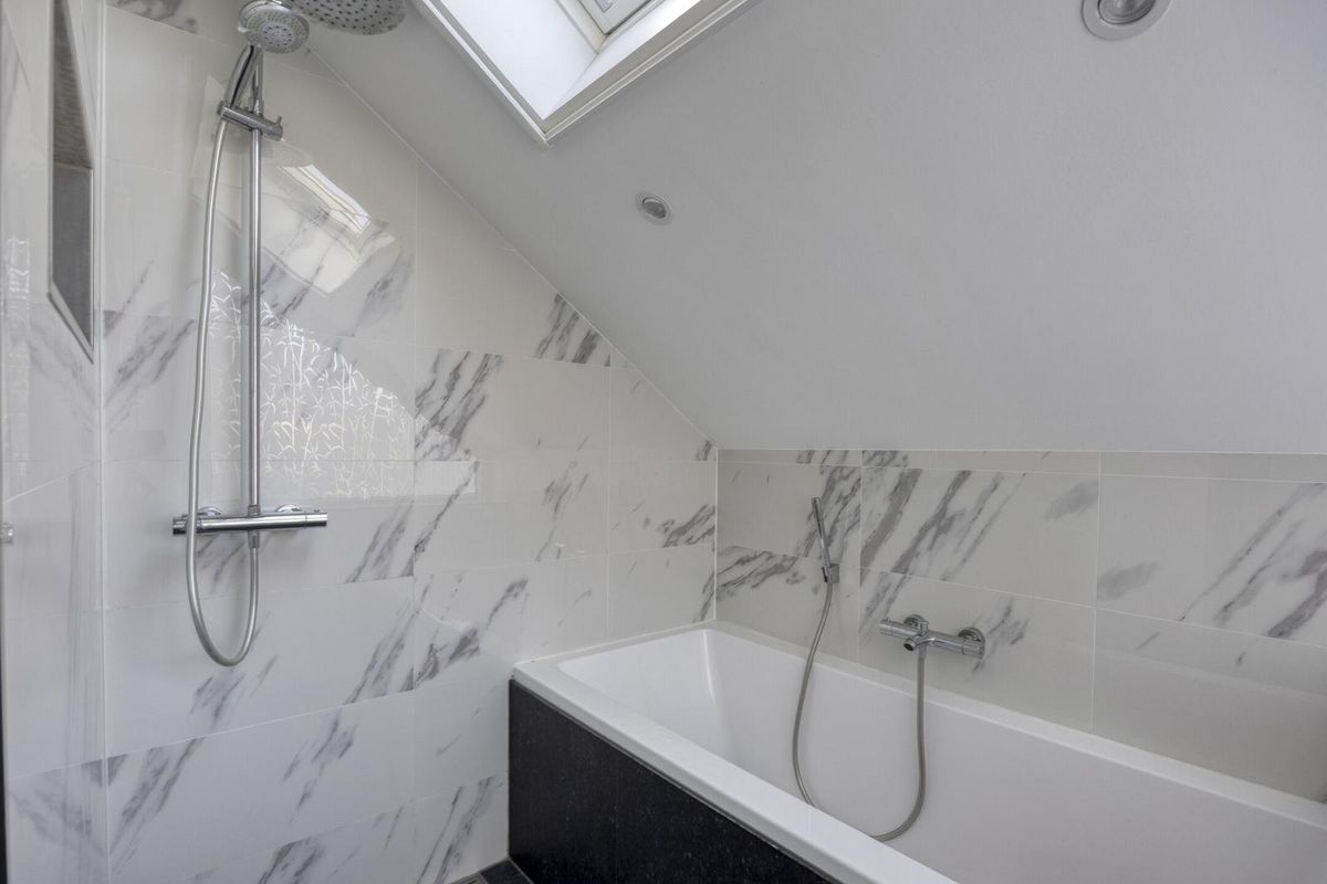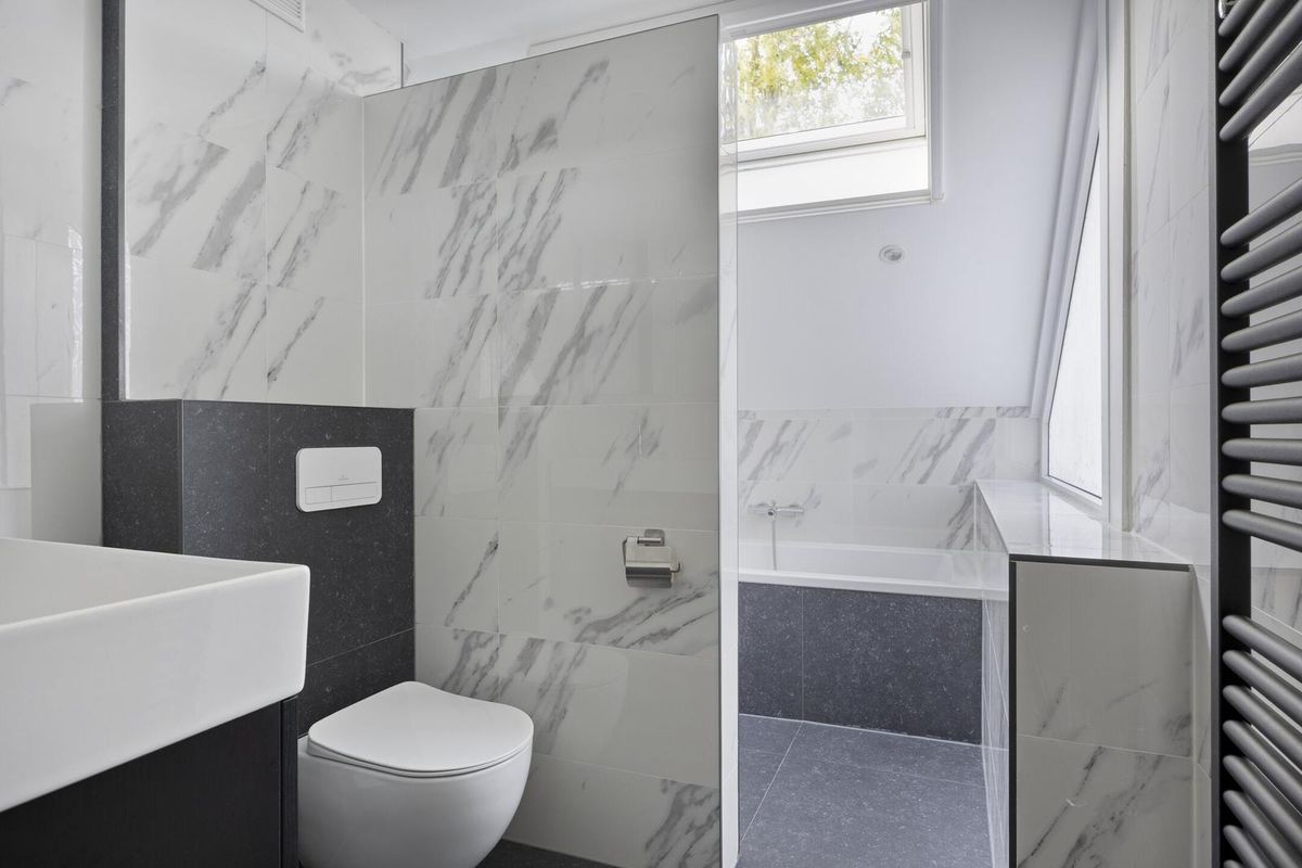 Overloop met toegang naar drie slaapkamers, handige berging en de luxe badkamer. De slaapkamers zijn ruim, licht en bieden voldoende ruimte voor een bed en extra meubels. De badkamer is voorzien van alles wat u zich maar kunt wensen, namelijk een ligbad, douchehoek, wastafelmeubel, zwevend toilet, design radiator, mechanische ventilatie en elektrische vloerverwarming. Tevens is er een dakraam voor prettige lichtinval en natuurlijke ventilatie. Door de slimme indeling en het gebruik van hoogwaardige materialen voelt de badkamer niet alleen luxe aan, maar is deze ook functioneel en praktisch in gebruik.