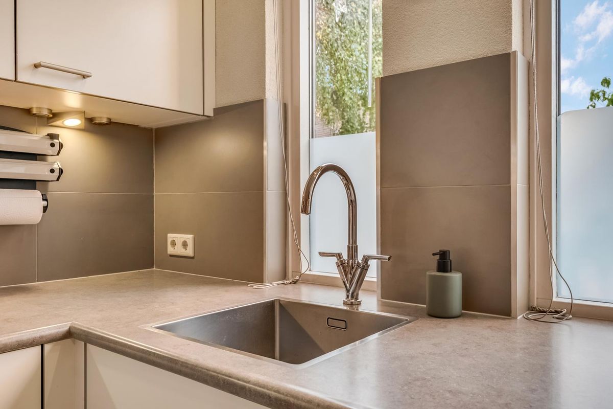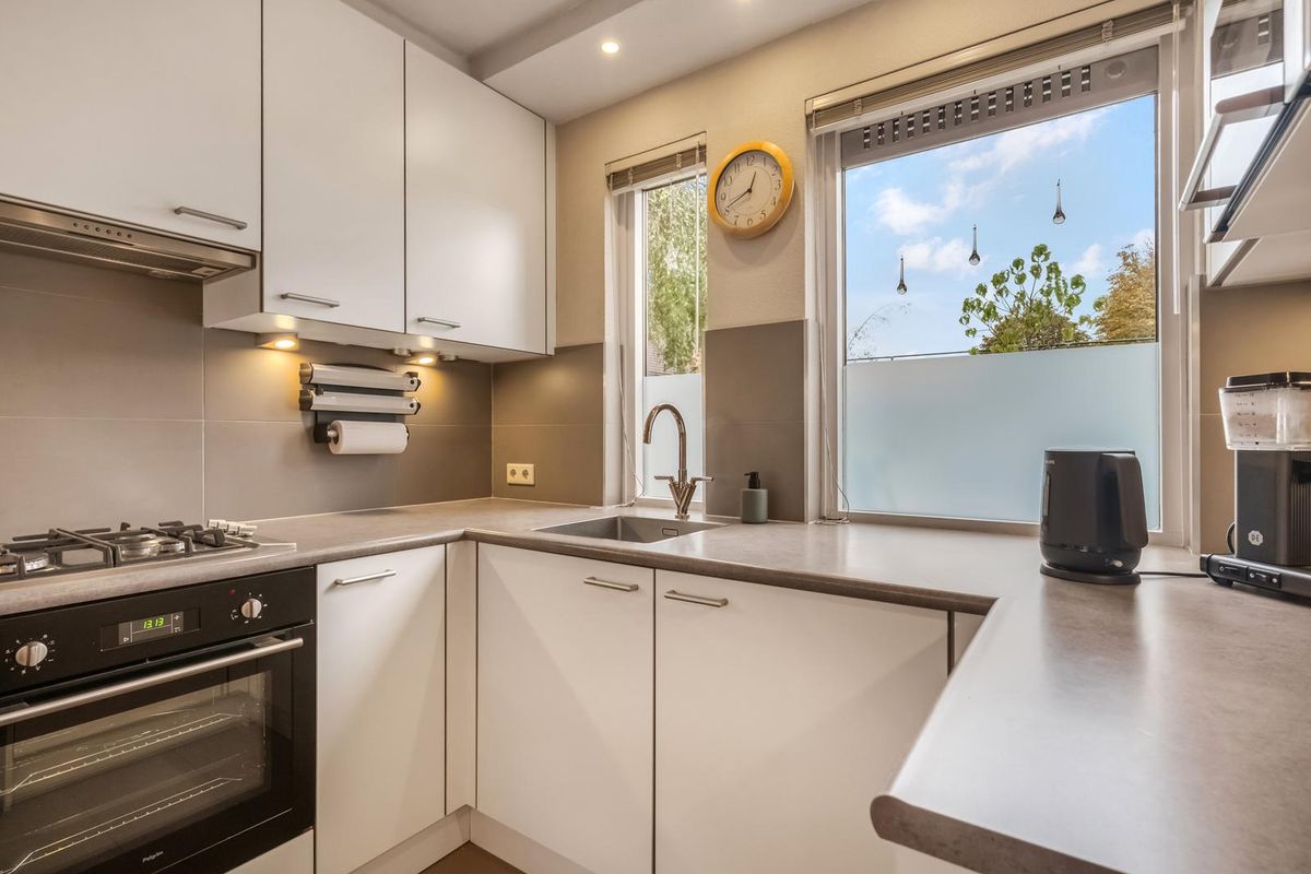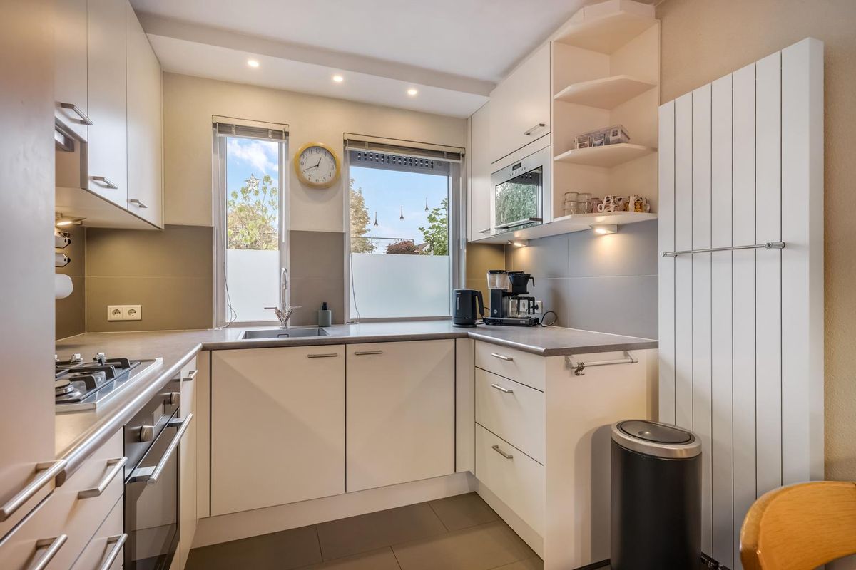 De keuken heeft een praktische opzet met voldoende kastruimte en werkblad. Alles wat je nodig hebt is aanwezig, en de lichte kleuren zorgen voor een frisse uitstraling. De eethoek sluit er mooi op aan, waardoor je een fijne plek hebt voor het dagelijkse leven.