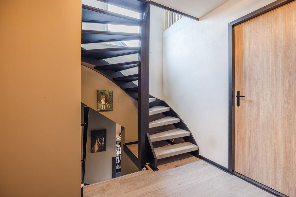 Entree in hal met toiletruimte, meterkast, trapopgang naar de verdieping en toegang tot de woonkamer met grote raampartijen voor lekker veel lichtinval. Onder de trap is een praktische kast met veel bergruimte gemaakt. Aan de achterzijde van de woning is de woonkeuken gesitueerd. Deze is in 2021 compleet vernieuwd en uitgerust met een inductie kookplaat, afzuigscherm, vaatwasser, koelkast, vriezer, combi magnetron en een Howat waterkraan.