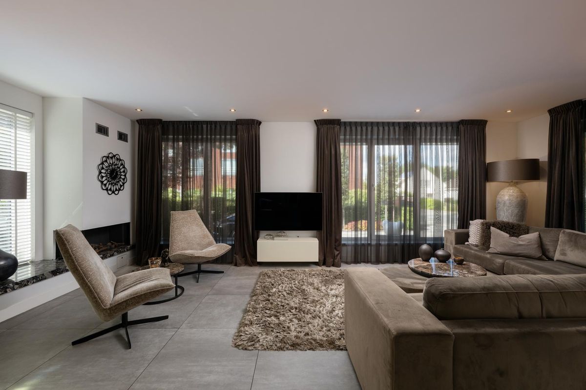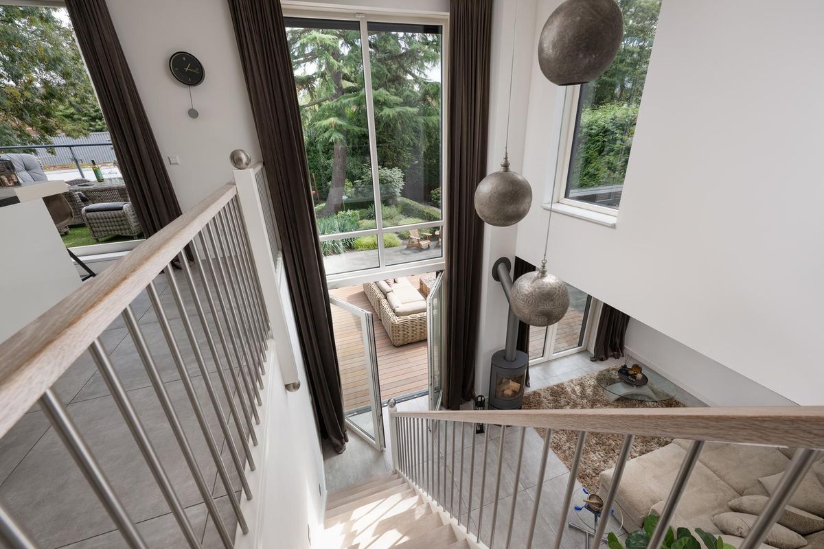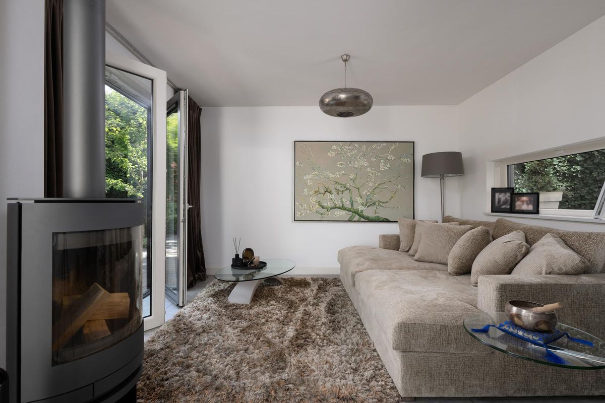 This perfectly maintained split-level villa combines a robust, modern appearance with refined details. Thanks to its unique layout, you enjoy two living rooms: upstairs a spacious, light-filled room with soaring windows and a cozy fireplace, and downstairs a more intimate living area with its own fireplace and direct access to the garden. The result is a home that adapts to every mood and moment – from grand and open to warm and inviting.