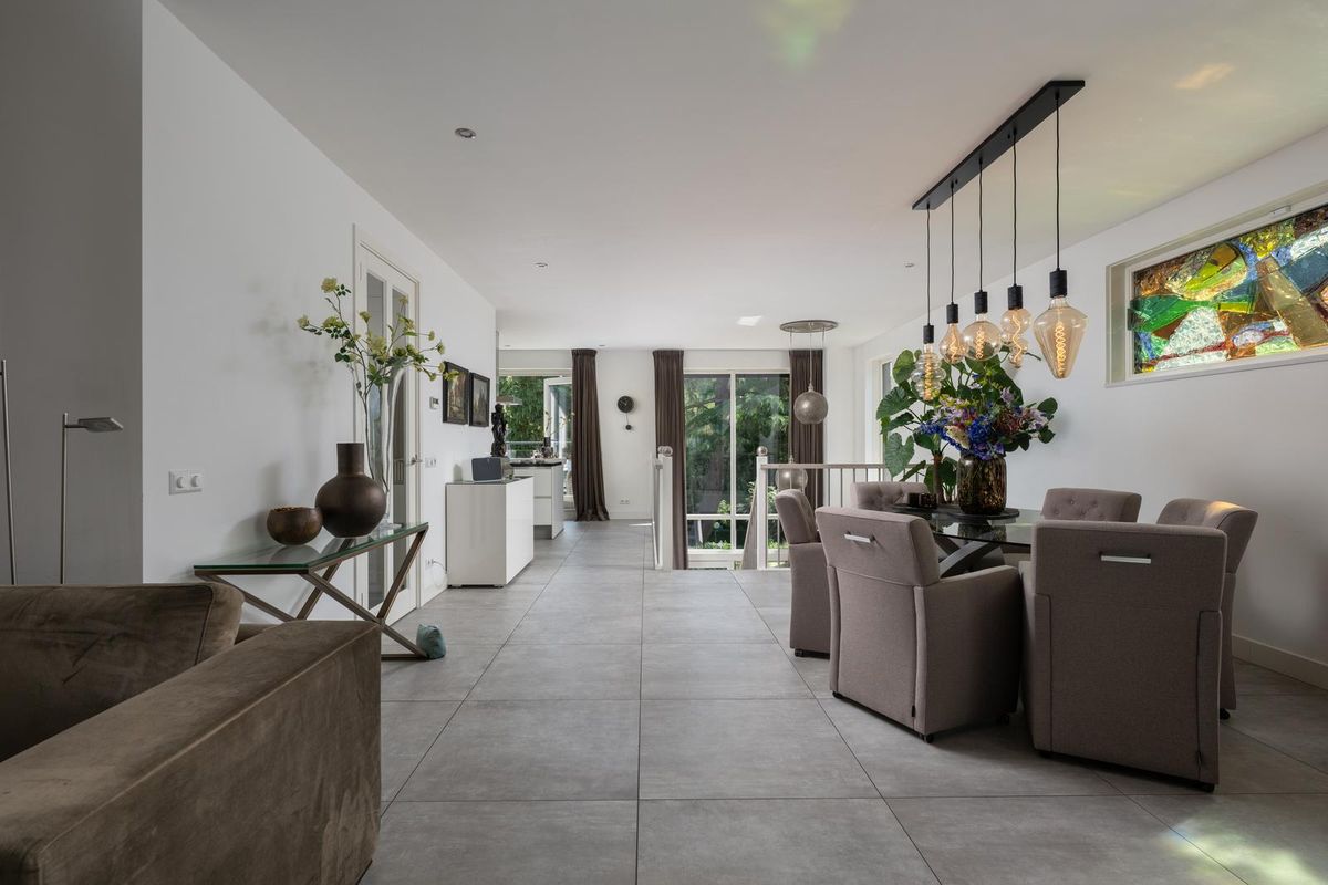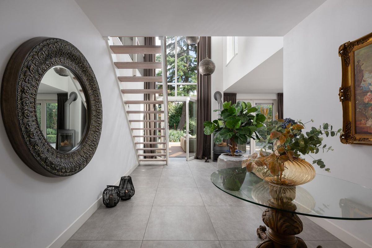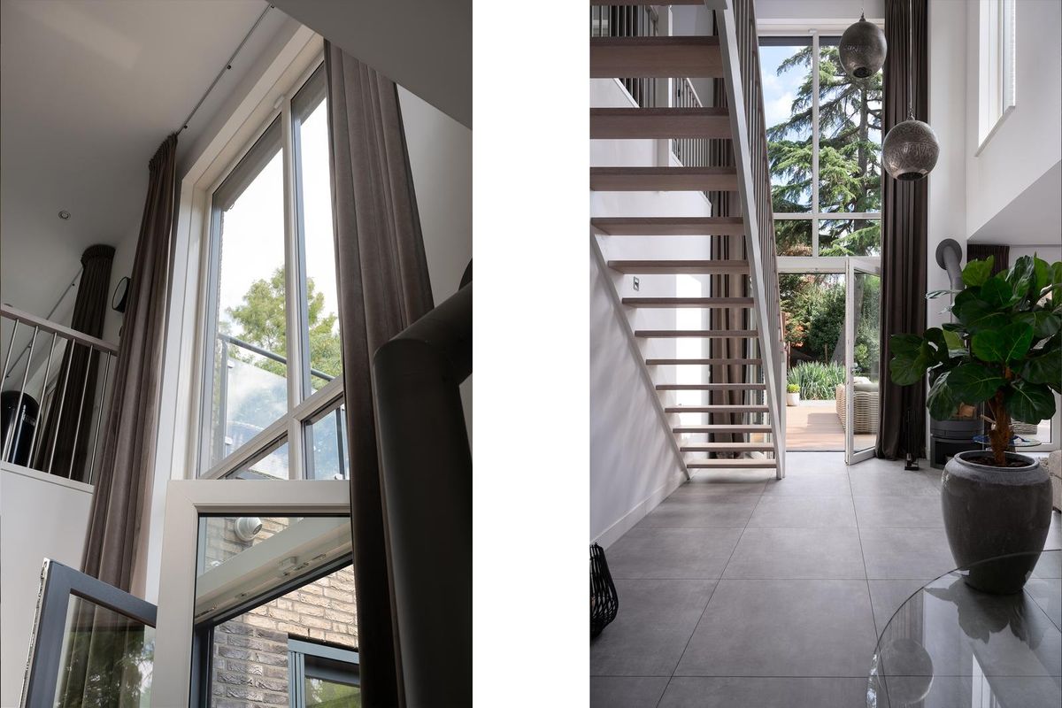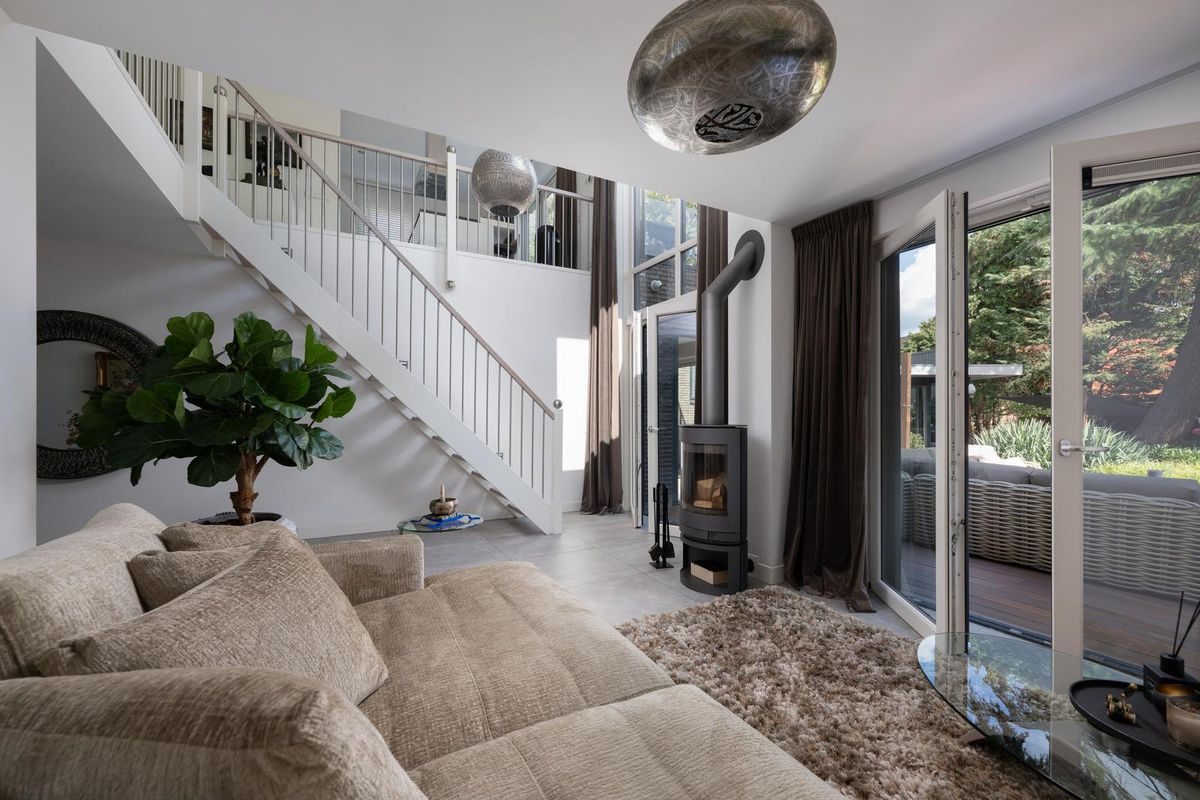 This perfectly maintained split-level villa combines a robust, modern appearance with refined details. Thanks to its unique layout, you enjoy two living rooms: upstairs a spacious, light-filled room with soaring windows and a cozy fireplace, and downstairs a more intimate living area with its own fireplace and direct access to the garden. The result is a home that adapts to every mood and moment – from grand and open to warm and inviting.