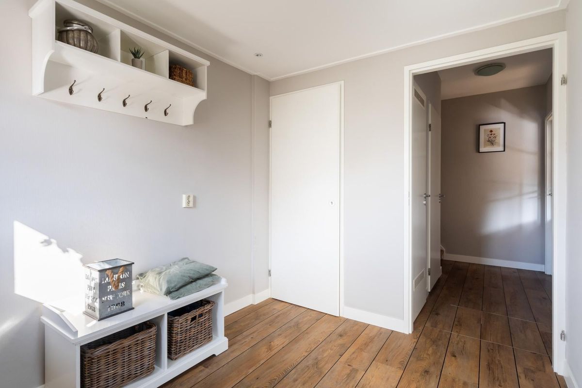Op de eerste verdieping zijn twee ruime slaapkamers, waarvan één is ontstaan door het samenvoegen van twee kamers. Beide kamers zijn voorzien van vaste kastruimte. De badkamer is in 2020 vernieuwd en uitgerust met moderne grijze tegels, een inloopdouche, vrijhangend toilet, dubbel wastafelmeubel, vloerverwarming en handdoekenradiator.