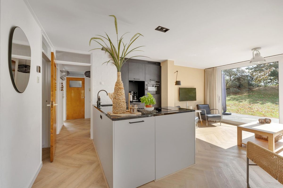Binnenkomst is via een centrale hal die toegang biedt tot de verschillende vertrekken. De woonkamer is licht en ruim met grote raampartijen en prachtig zicht op de omliggende natuur. De aangrenzende open keuken is modern en praktisch ingericht, voorzien van diverse inbouwapparatuur. De keuken, evenals de PVC-vloer, zijn in 2022 geplaatst. Ook in 2022 is een nieuwe groepenkast gemonteerd. De woning beschikt over drie slaapkamers, geschikt voor in totaal zes personen, een nette badkamer met douche en wastafel en een apart toilet.Alles is gelijkvloersgelijkvloers wat het comfort verhoogt voor zowel gezinnen als senioren. Daarnaast is er een wasmachineaansluiting aanwezig.