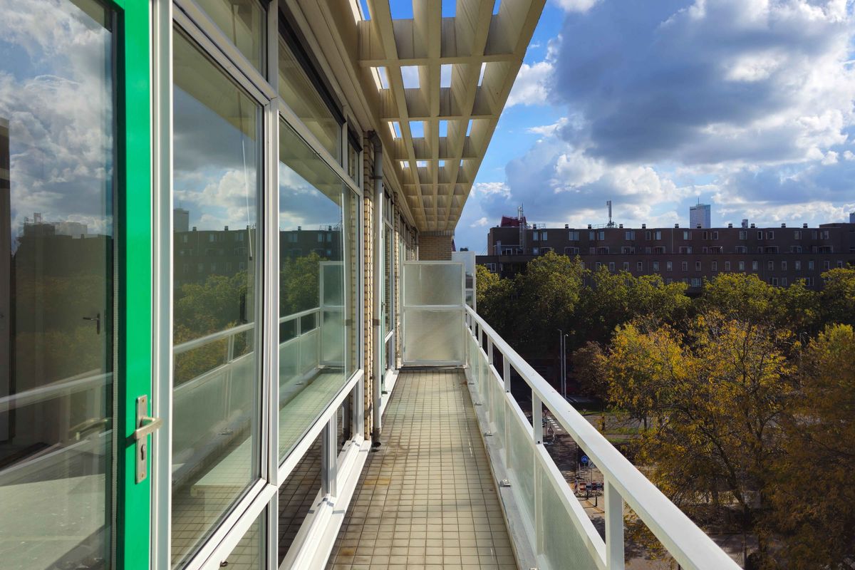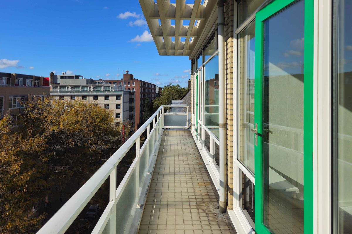 Het appartement is gelegen op de 5e etage van het complex en beschikt over een gezellig stads uitzicht over de Groenendaal.