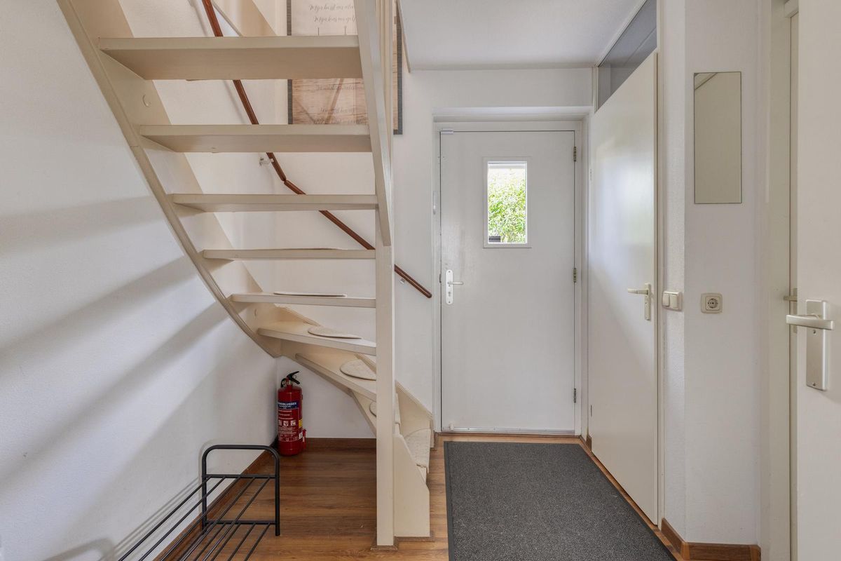 Je parkeert de auto op eigen terrein en bereikt de entree aan de zijkant. Binnenkomend in de hal tref je de meterkast, een radiator en een deels betegelde toiletruimte met fonteintje. Vanuit de hal heb je toegang tot de bijkeuken met cv-opstelling, witgoedaansluiting en een extra buitendeur.