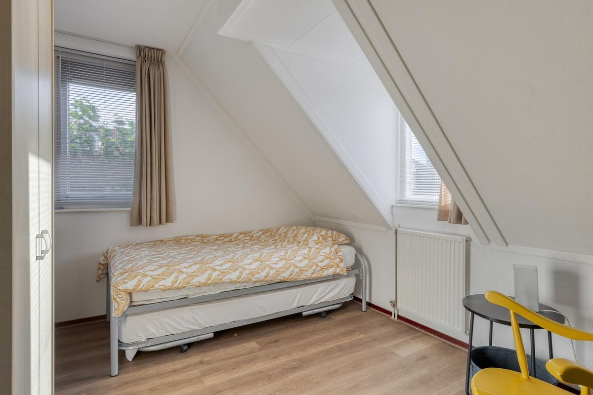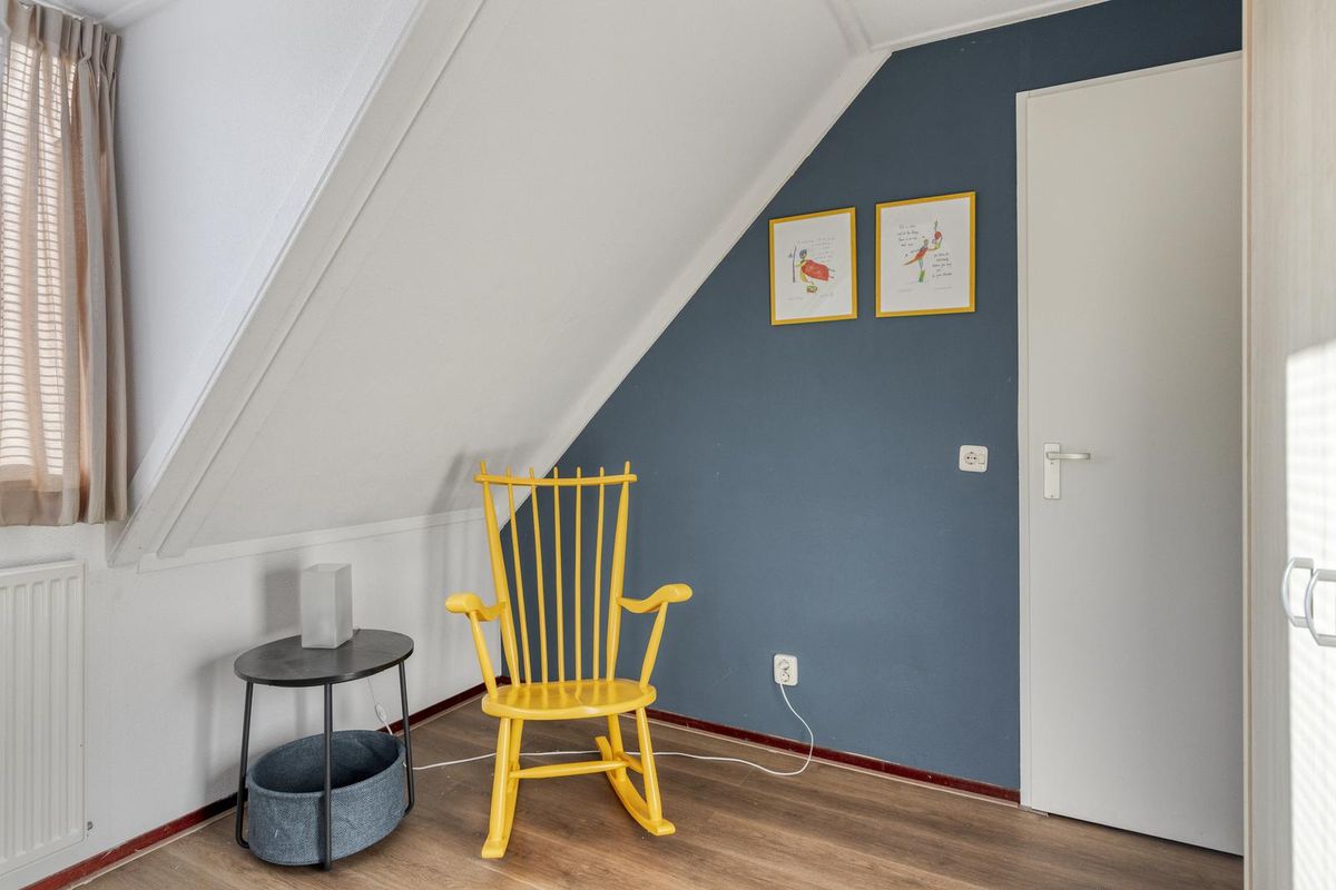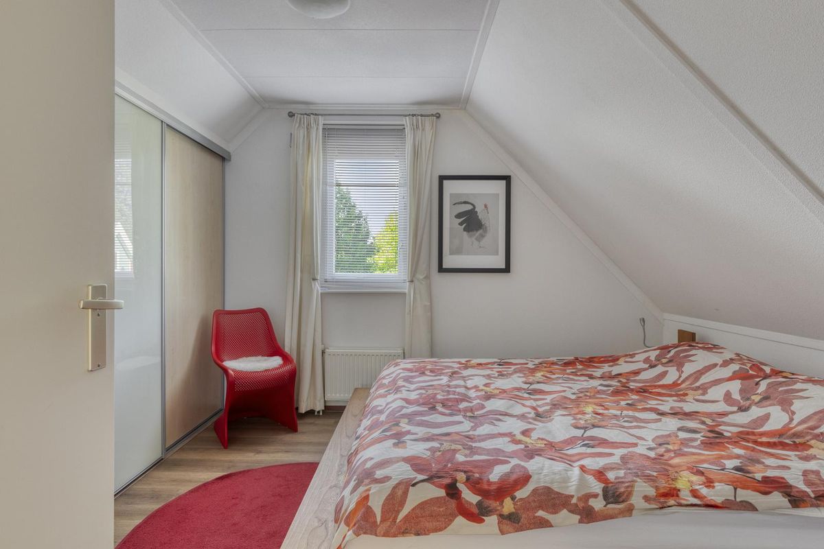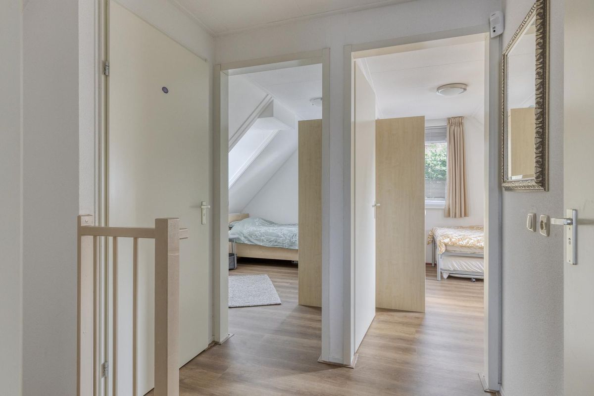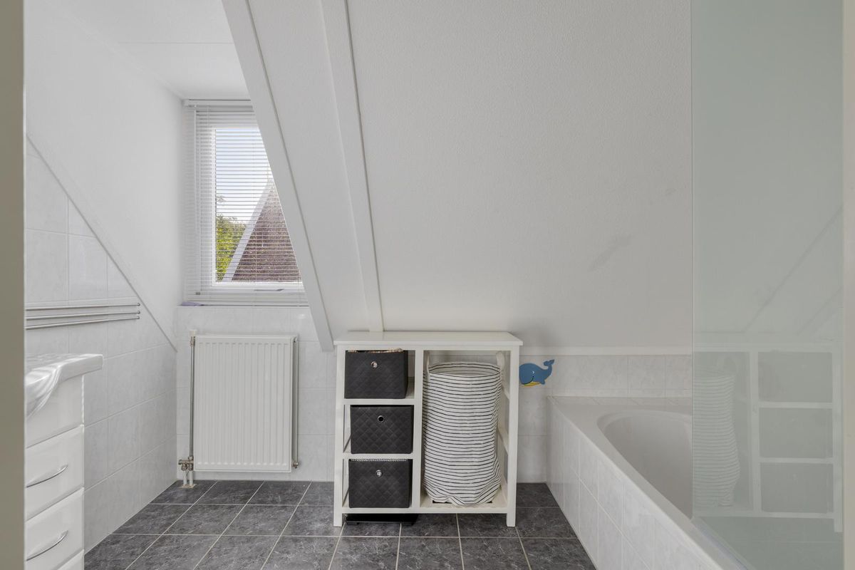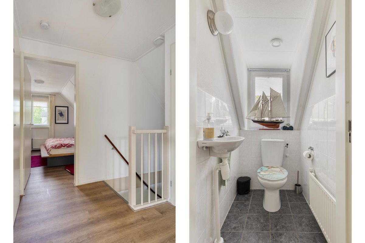 De eerste verdieping bereik je via de hal. Hier vind je een overloop met separate toiletruimte, drie slaapkamers en een badkamer. Deze badkamer is deels betegeld en uitgerust met een badmeubel (met wastafel en spiegelkast), een radiator en ligbad.
