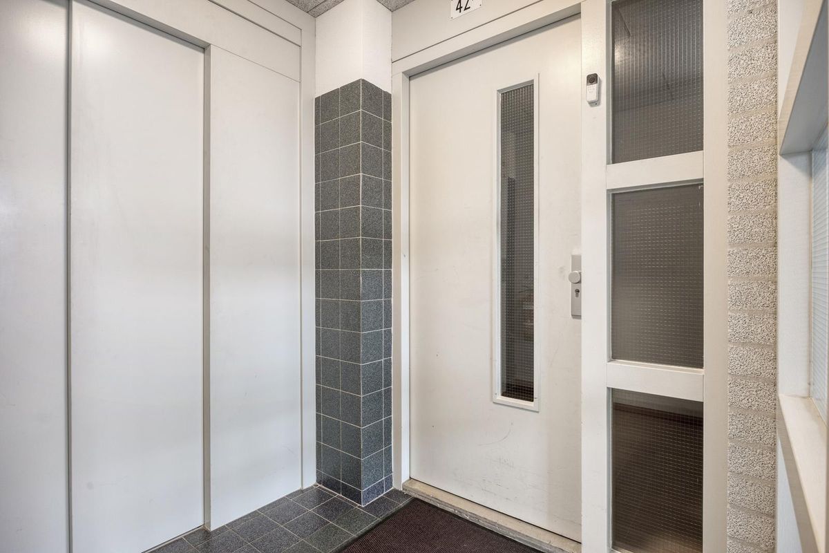 Verzorgde centrale entree met brievenbussen, video-intercom, lift en trapopgang naar de ,verdiepingen. Daarnaast is er toegang tot de stenen berging en twee vaste parkeerplaatsen.