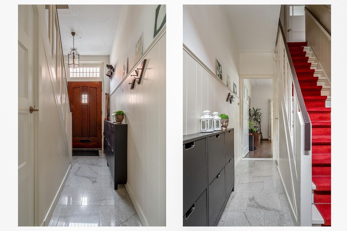 - Originele trapopgang met loper en roeden.
