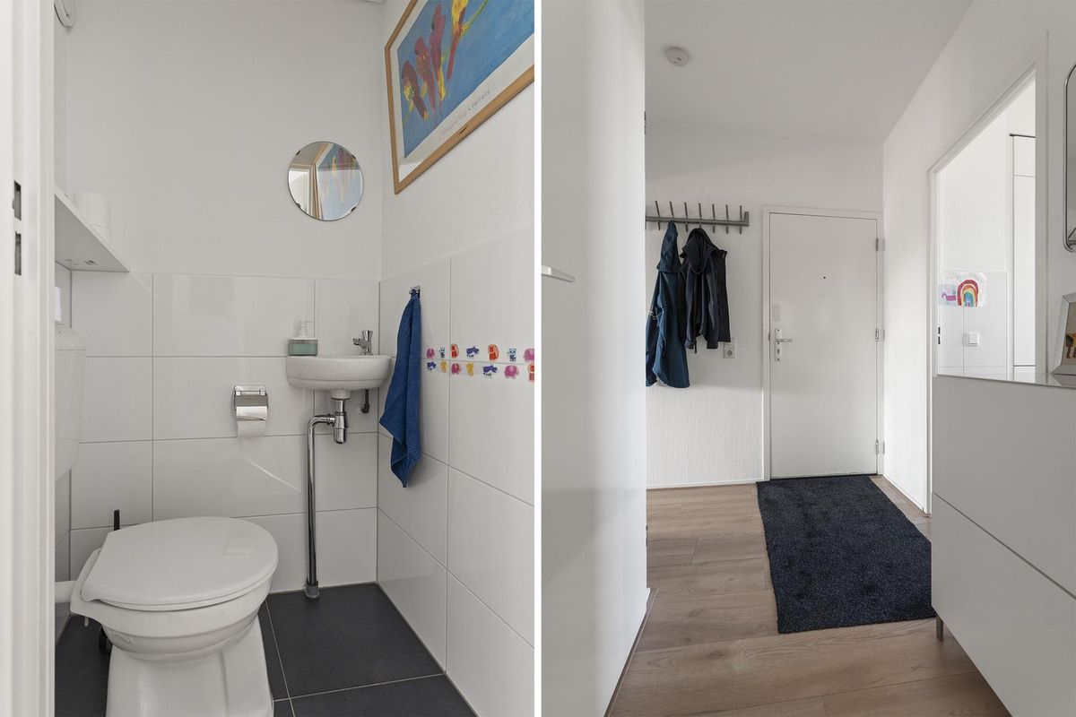 Het complex heeft een nette, gezamenlijke entree met brievenbussen, intercom en toegang tot je eigen berging. Van hieruit kun je met de trap of een van de liften naar boven.