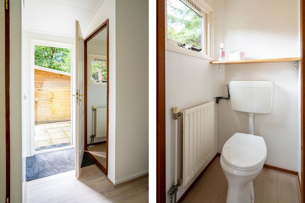 De badkamer is netjes en voorzien van een douchecabine, wastafelmeubel, mechanische ventilatie. Het chalet is zeer praktisch én comfortabel in gebruik. Overigens zijn de vloeren van de woonkamer, badkamer en toilet voorzien van een nieuwe pvc-vloer.