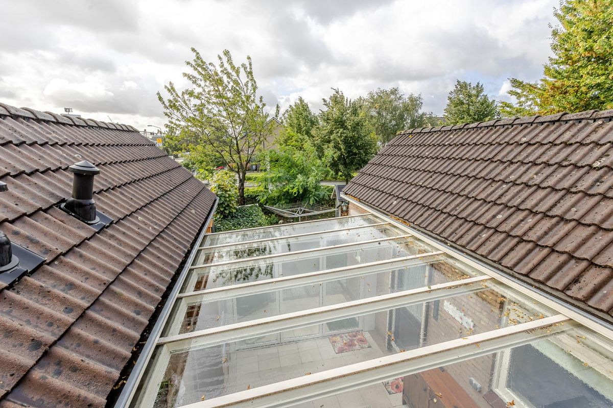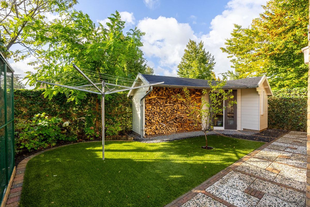 De tuin is gelegen op het zuiden, strak aangelegd en perfect onderhouden. Grenzend aan de keuken vindt u een prachtige glazen serre/overkapping: dé plek om het hele jaar door te ontspannen en te genieten van het buitenleven.