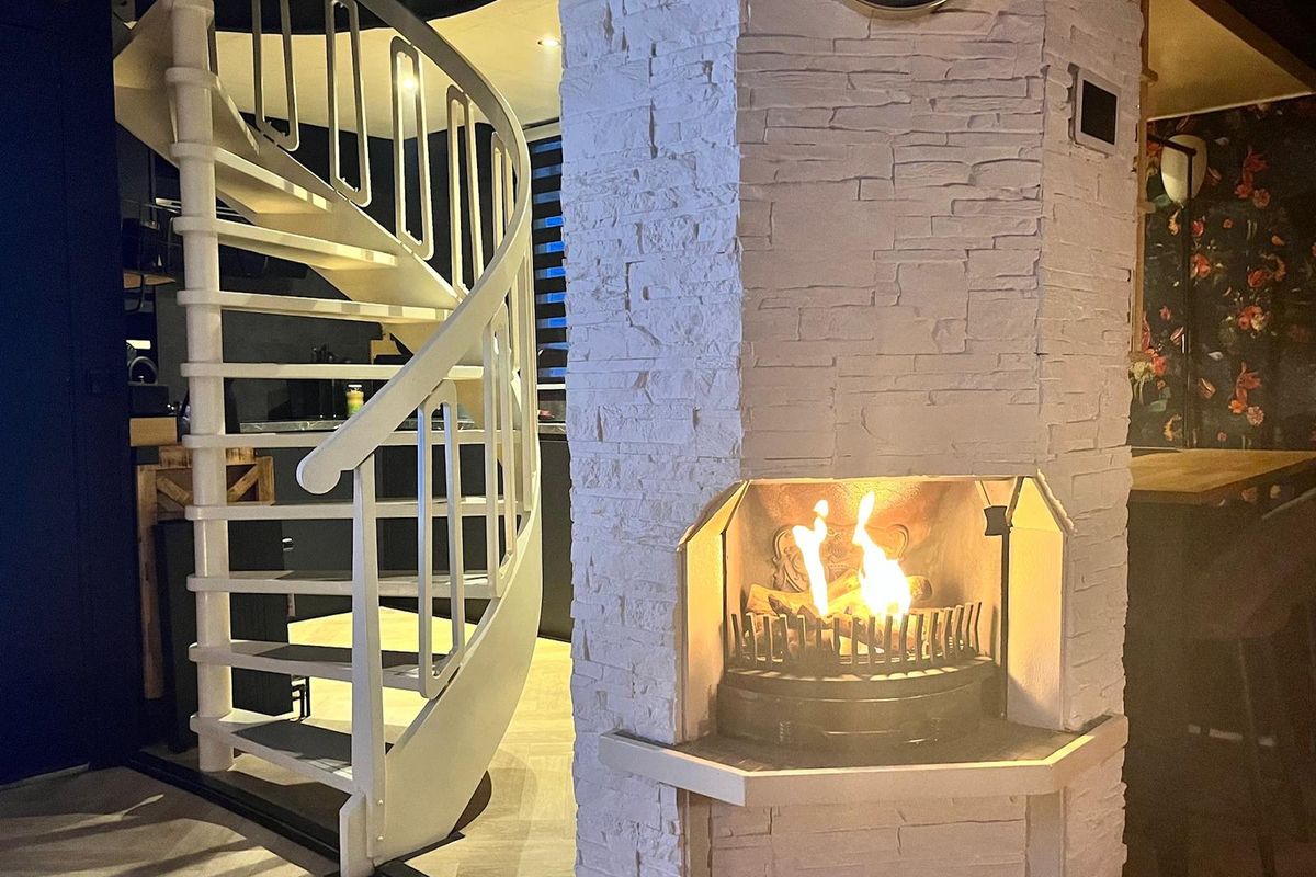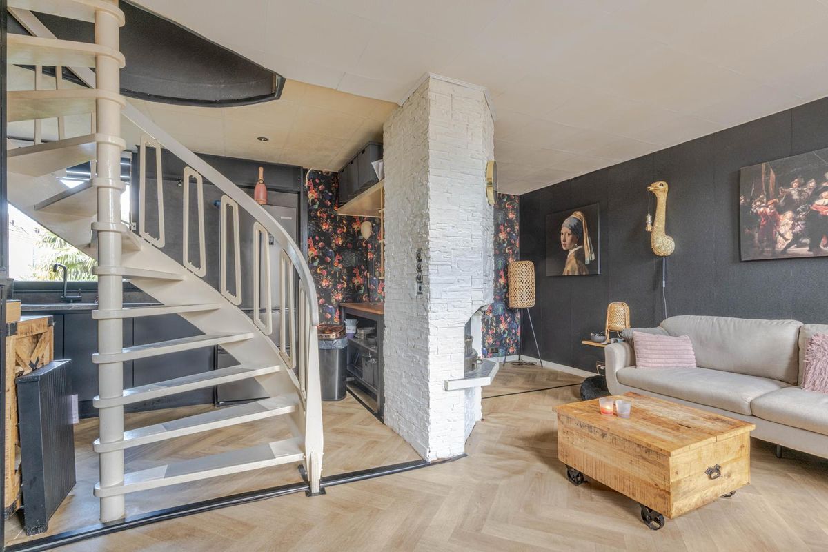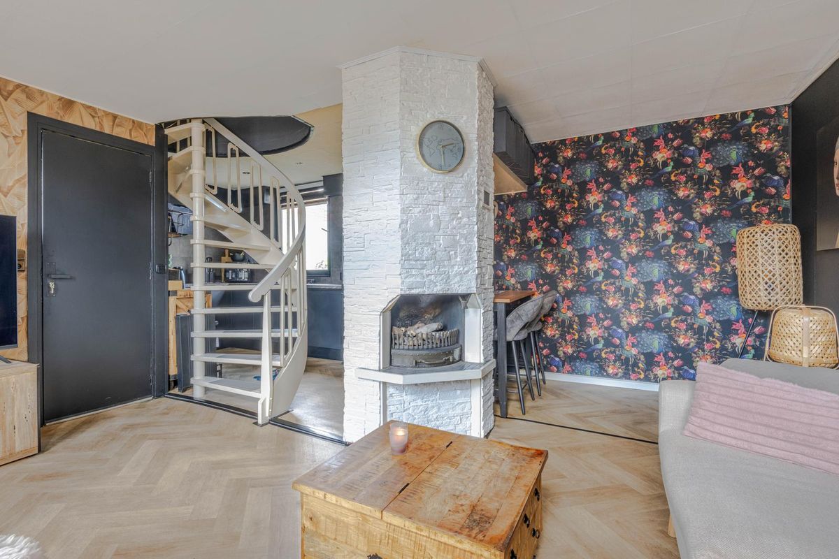 * Aangename living met mooi grote raampartijen, een open verbinding met de keuken en een vinylvloer, sfeervolle gashaard en trap naar de slaapverdieping.