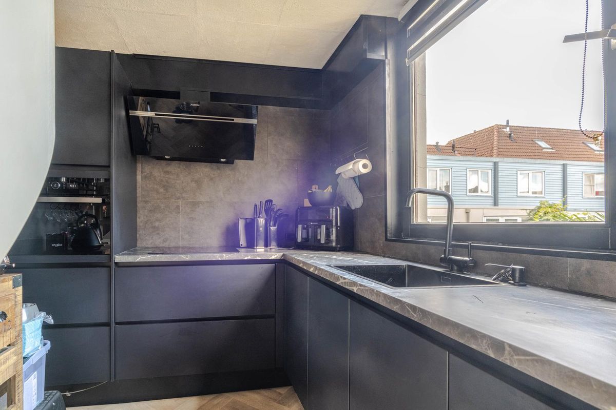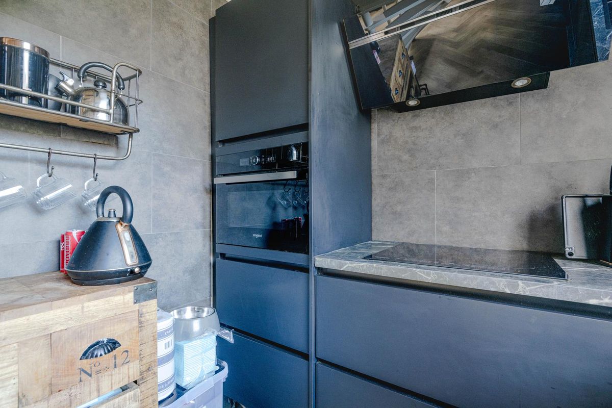 * Smaakvol ingerichte keukenruimte voorzien van hoek-inbouwkeuken met apparatuur: inductie kookplaat, combimagnetron, vaatwasmachine, schouw afzuigkap en losse koel-vriescombinatie. Ook is de ruimte voorzien van een eetbar met twee eetstoelen (blijven achter).