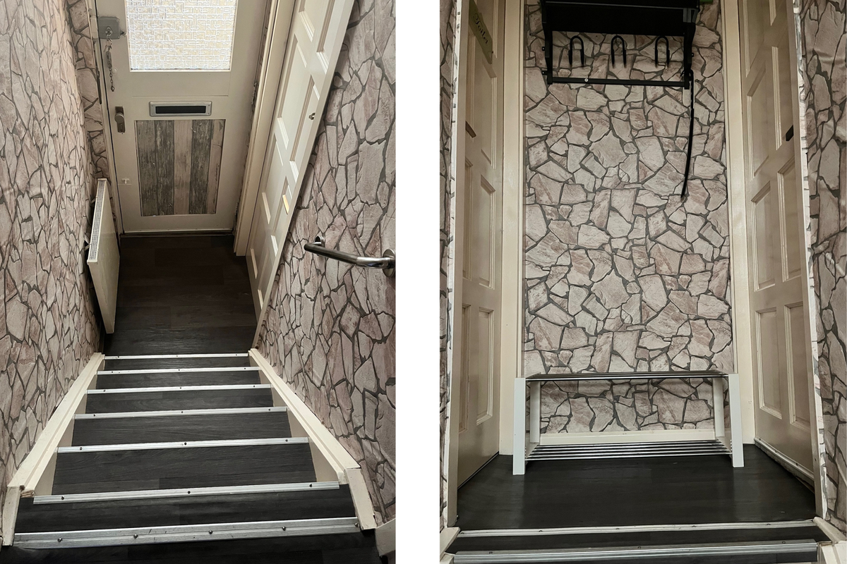 * Woningentree; trap naar het souterrain en trap naar de woonkamer.