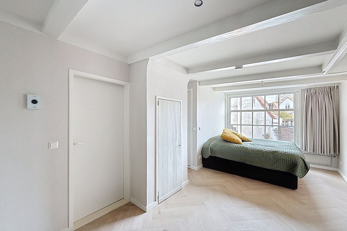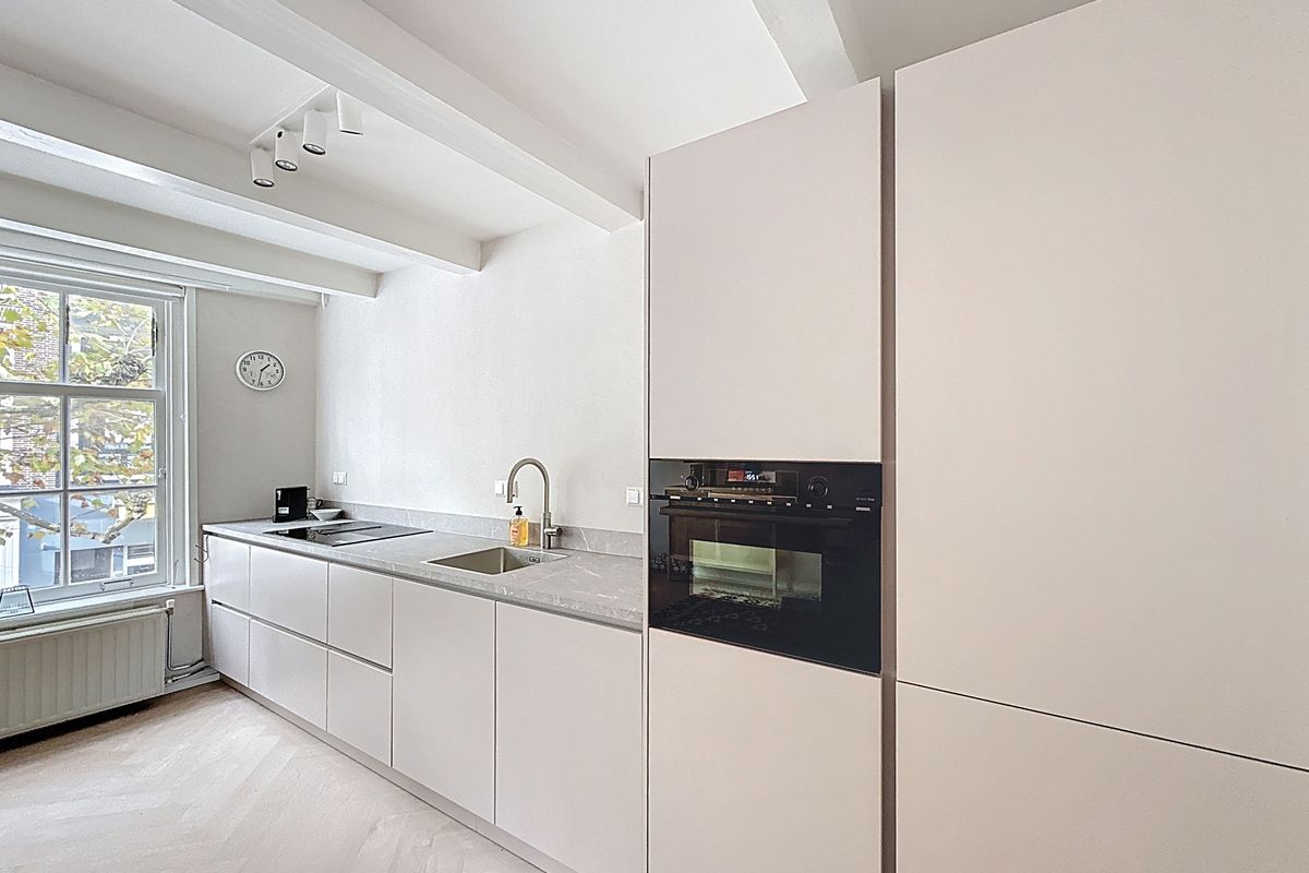 De royale keuken is een echte eyecatcher. Uitgerust met alle denkbare inbouwapparatuur, waaronder een vaatwasser, quooker, inductiekookplaat met geïntegreerde afzuiging en een grote oven. Er is daarnaast veel werk- en opbergruimte. De keuken vormt een heerlijke plek om te koken met zicht op de gezellige Grote Houtstraat.
