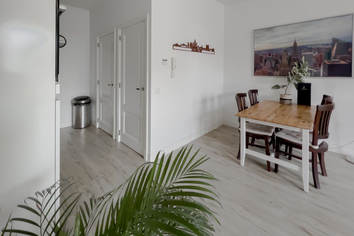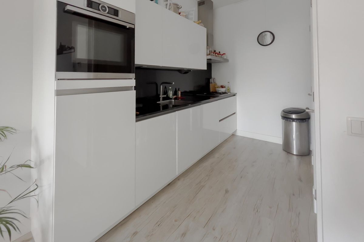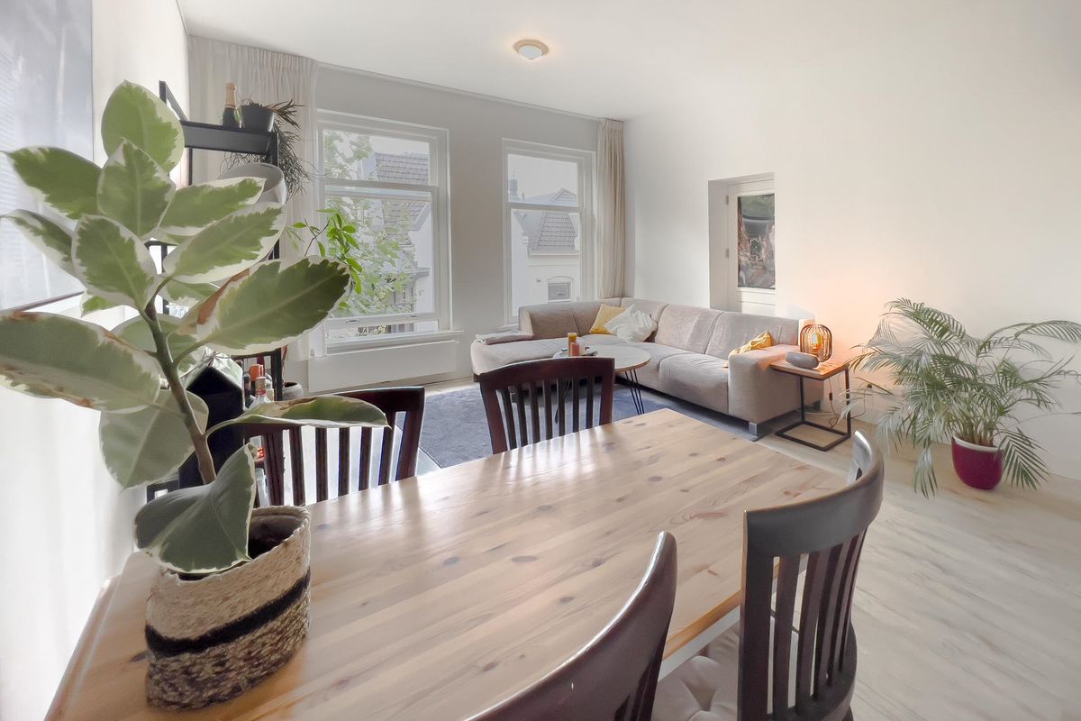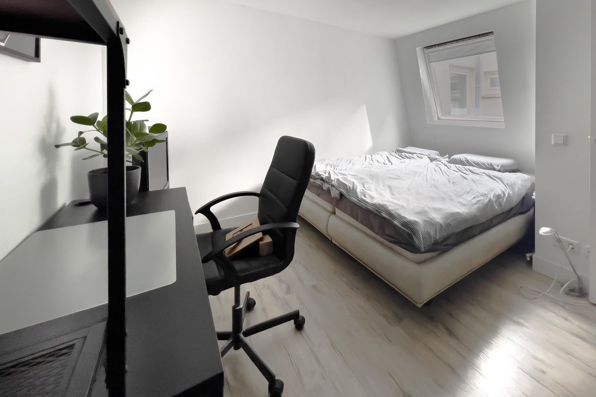The spacious living room with open kitchen overlooks the cozy Grote Houtstraat and has a beautiful light thanks to large windows. The kitchen is fully equipped such as gas hob, combination oven, fridge/freezer, dishwasher and extractor hood. There is also a storage room in the kitchen.