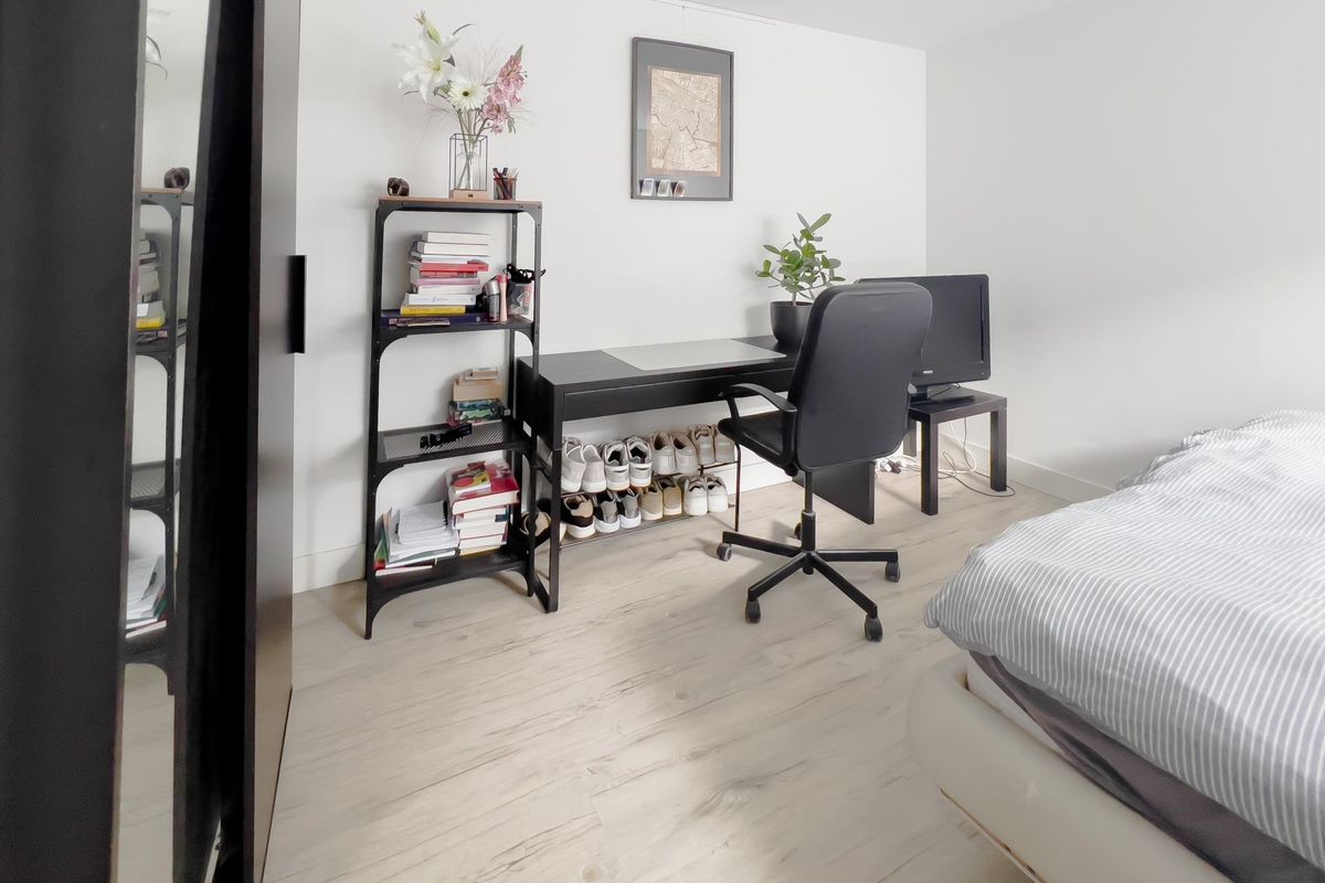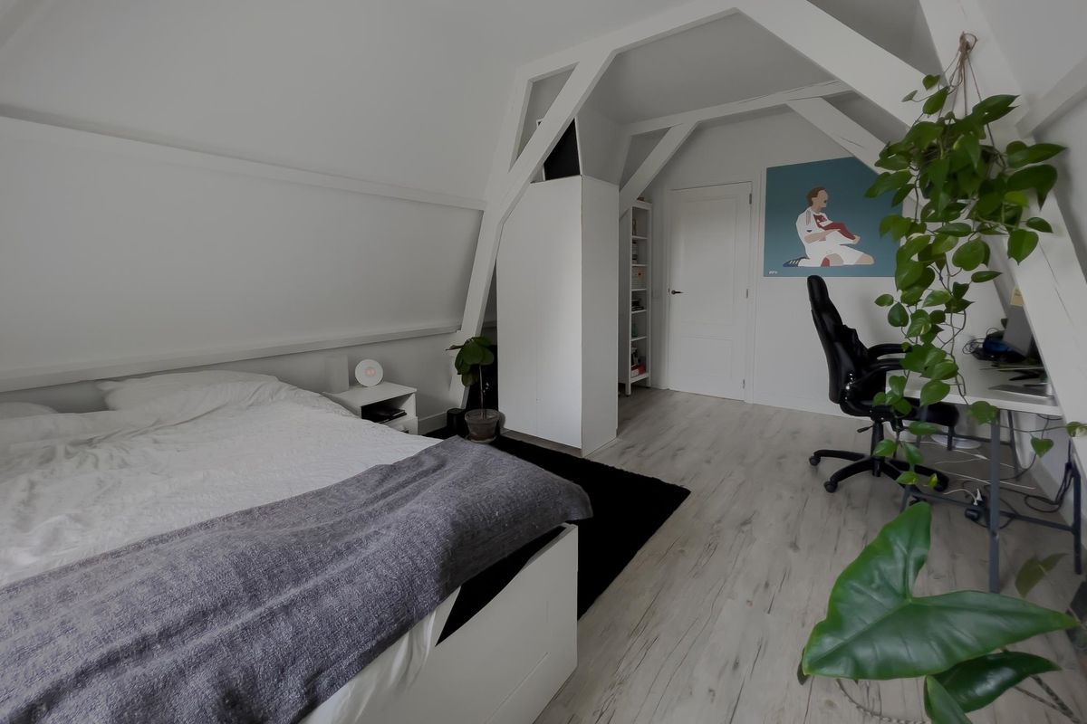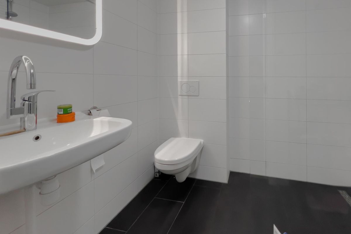 Op dezelfde etage bevindt zich een ruime en rustige slaapkamer. Bij deze kamer hoort een badkamer met inloopdouche, toilet en wastafel.