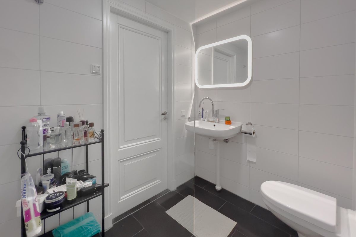 On the same floor there is a spacious and quiet bedroom. This room has a bathroom with a walk-in shower, toilet and sink.