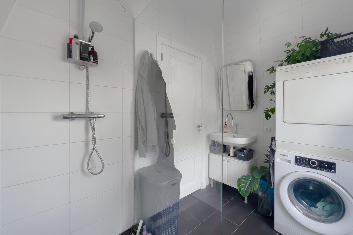 Op de tweede etage bevindt zich een tweede slaapkamer, gelegen aan de voorzijde van de woning. Hier tegenover ligt de tweede badkamer, tevens met inloopdouche, toilet en wastafelmeubel. Ook bevindt zich hier de wasmachineaansluiting.