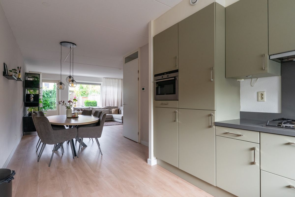Begane grond: entree, royale hal, meterkast, modern toilet(zwevend) met fonteintje, garderobe nis, trapopgang, provisiekast, royale woonkamer, openkeuken met luxe inrichting waaronder een composieten aanrechtblad, 5-pits gaskookplaat, afzuigschouw, vaatwasser en koelkast.