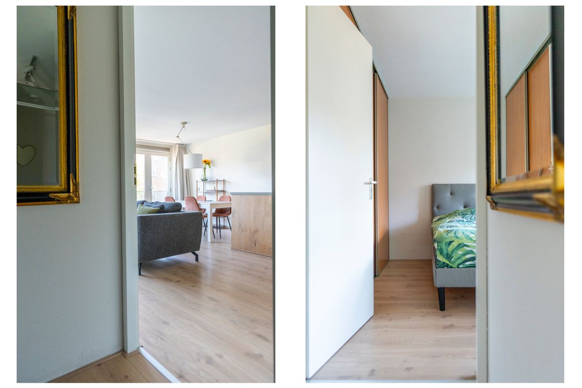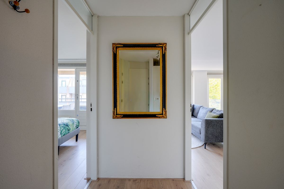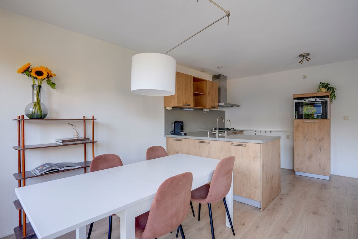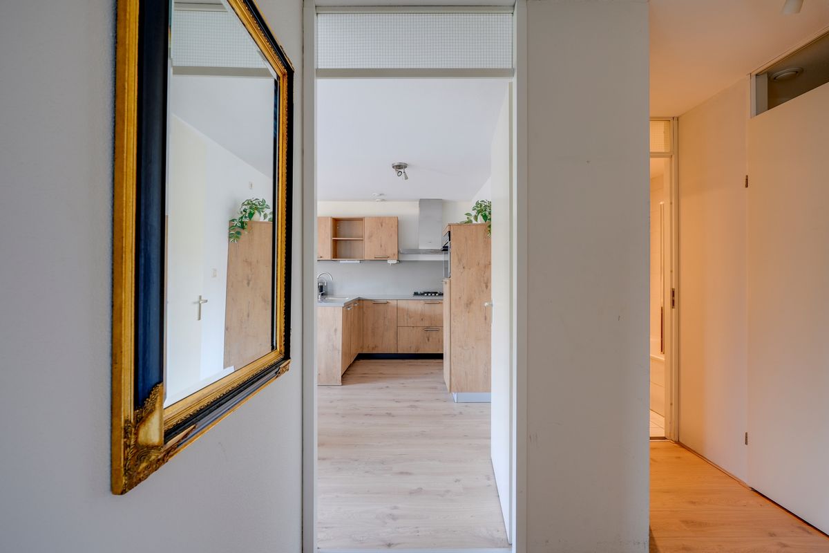 Het appartement bevindt zich op de eerste verdieping van een verzorgd complex uit 1998, toegankelijk via een gezamenlijke entree en trappenhuis. Bij binnenkomst valt de woonkamer op door de grote raampartijen die veel natuurlijk licht binnenlaten en zorgen voor een open en prettige sfeer. De woonkamer is ruim opgezet en biedt genoeg plek voor een comfortabele zithoek en een eethoek. De open keuken grenst direct aan de woonkamer en is praktisch ingericht met diverse inbouwapparatuur van hoge kwaliteit, wat koken en samen eten eenvoudig en aangenaam maakt.