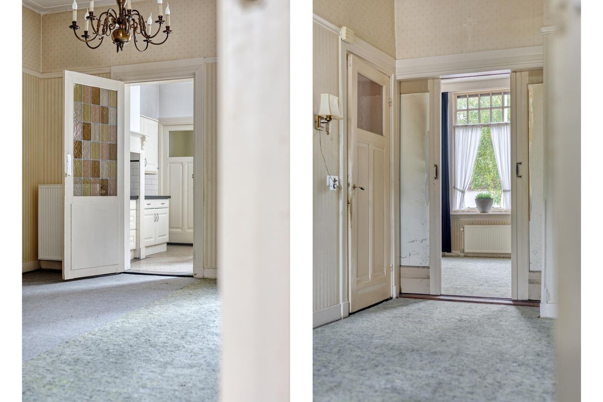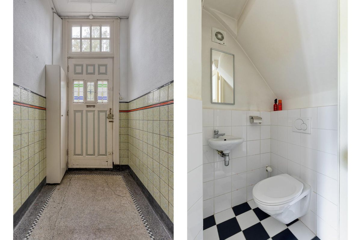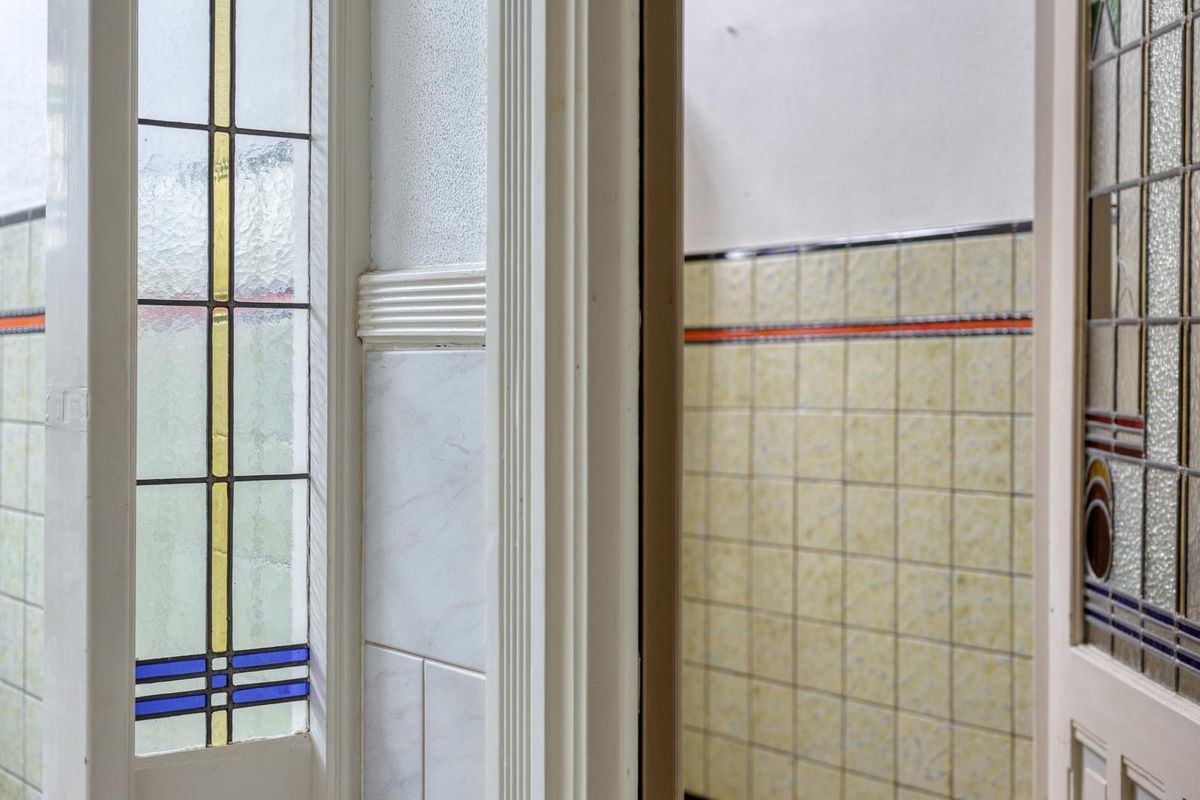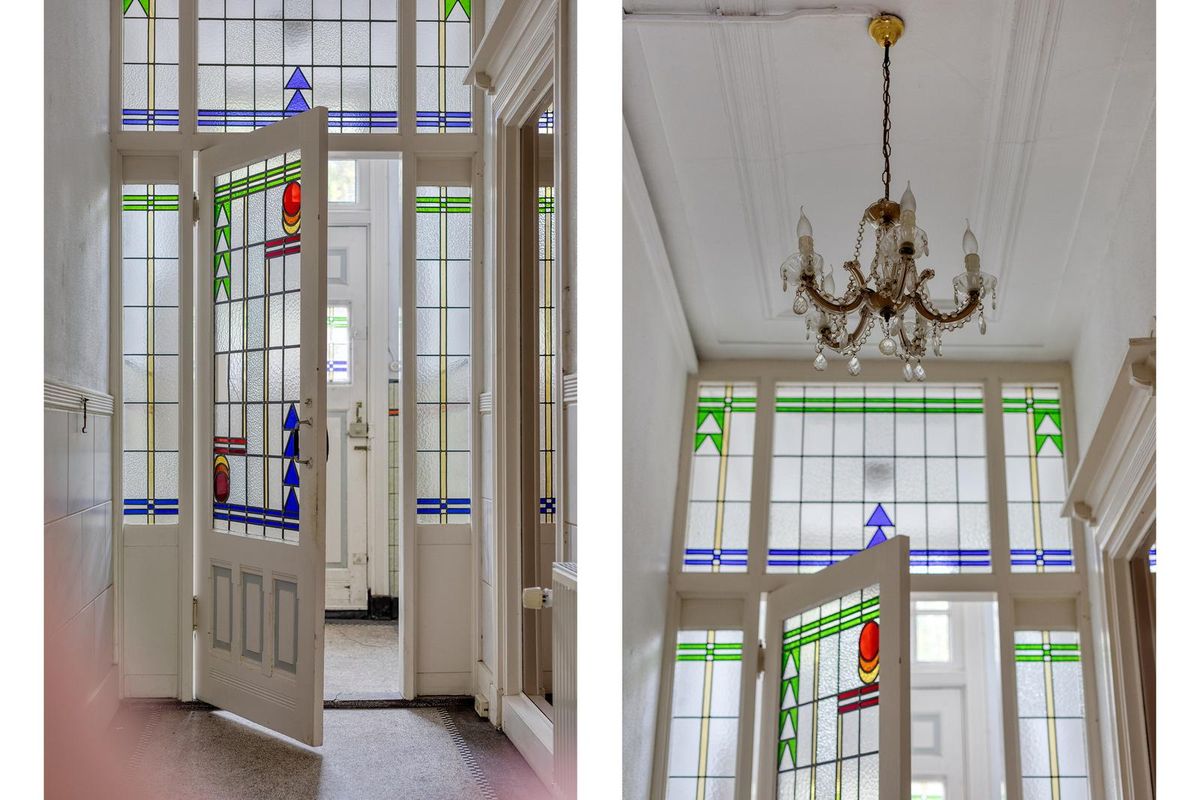 De entree geeft toegang tot de hal. De entree is voorzien van een originele granieten vloer, een authentieke tegellambrisering en glas-in-loodramen.