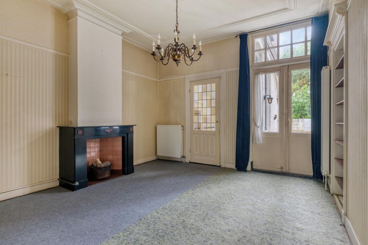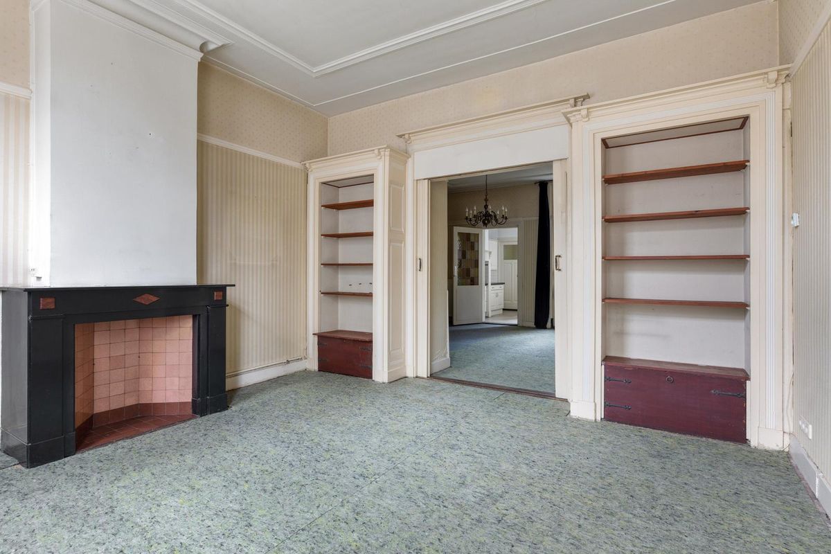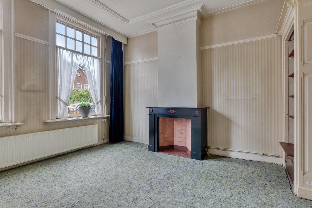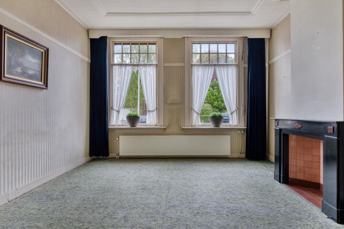 De sfeervolle woonkamer-en-suite is middels vaste kasten en schuifdeuren gescheiden in een voor- en achterkamer. De voorkamer is circa 20 m² groot. De voorkamer heeft een authentieke schouw, twee nissen (met boekenplanken) en twee originele schuiframen. Door de hoge ramen is er veel lichtinval in de voorkamer. De achterkamer is circa 18 m² groot. De achterkamer heeft een authentieke schouw, een vaste kast, een tweede diepe vaste kast, een nis (met boekenplanken) en tuindeuren. Vanuit de achterkamer is de keuken te bereiken.